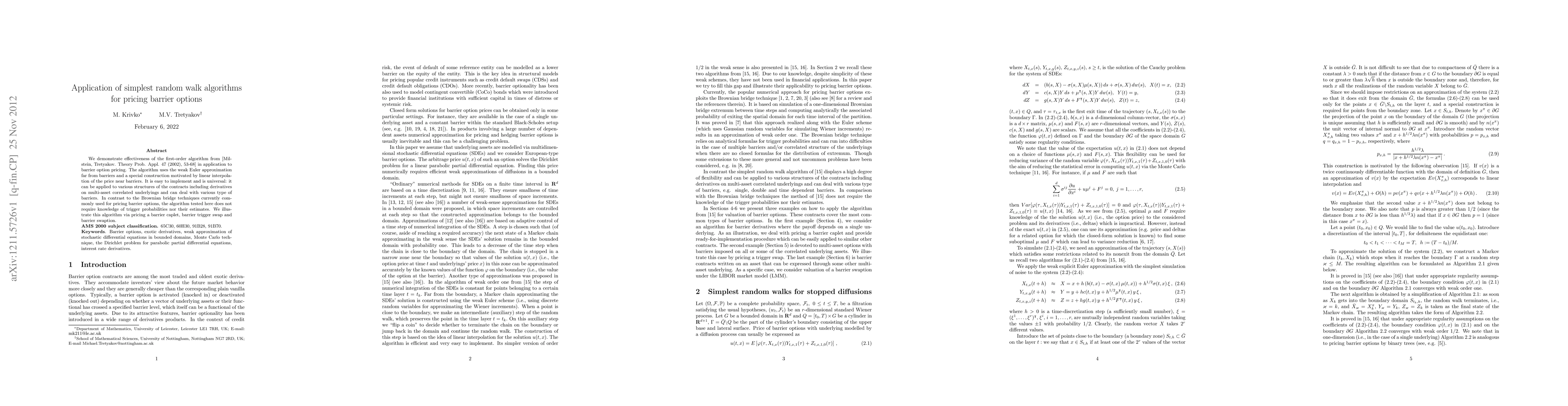 This paper applies a first-order random walk algorithm for pricing barrier options, using weak Euler approximation and linear interpolation near barriers. Unlike traditional Brownian bridge techniques, it does not require knowledge of trigger probabilities, demonstrating its effectiveness through pricing examples like barrier caplets, swaps, and swaptions.