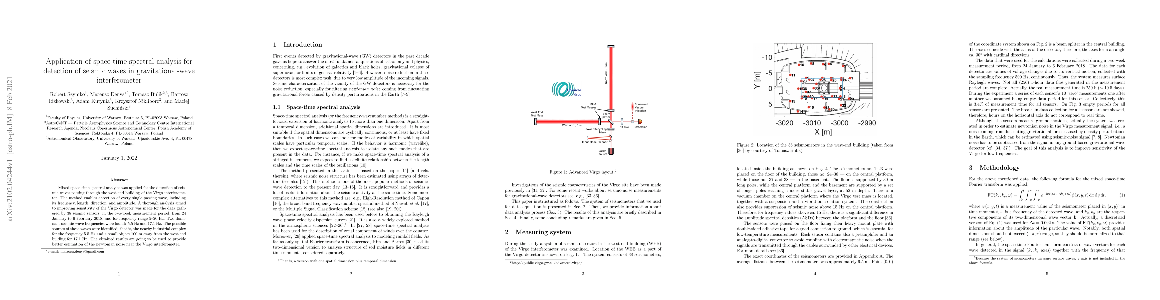 This study applied mixed space-time spectral analysis to detect seismic waves in the Virgo interferometer, identifying dominant frequencies of 5.5 Hz and 17.1 Hz, with sources traced to a nearby industrial complex and a small object respectively. The findings aim to enhance the sensitivity of the Virgo detector by better estimating Newtonian noise.
