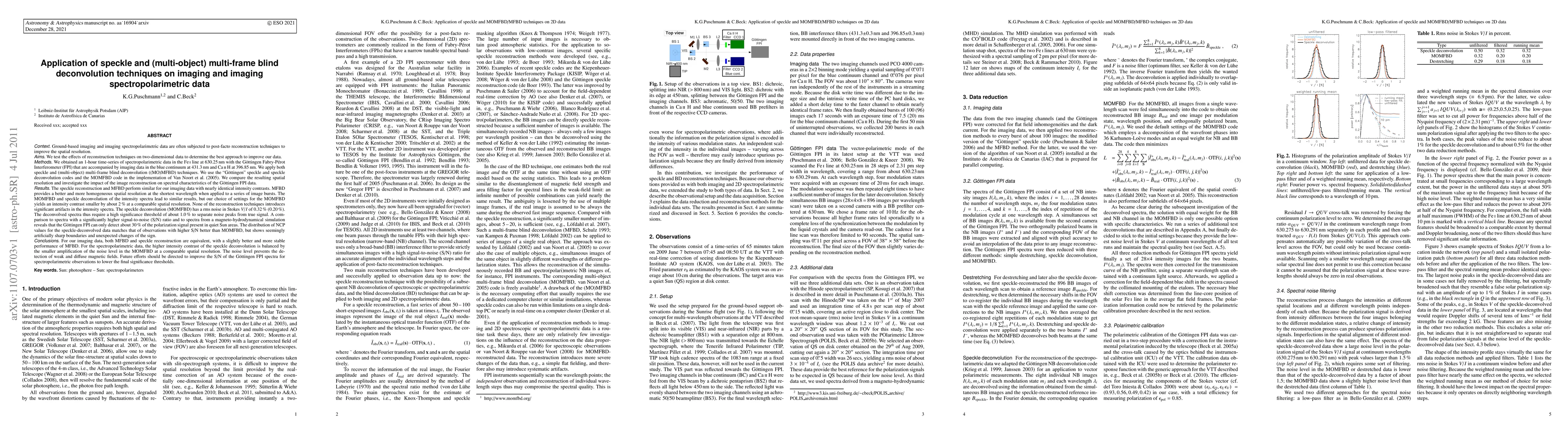 This paper evaluates the effectiveness of speckle and multi-object multi-frame blind deconvolution (MOMFBD) techniques on spectropolarimetric and imaging data. Both methods yield similar results for imaging data, but MOMFBD provides better resolution at shorter wavelengths, while speckle deconvolution offers higher intensity contrast but with a higher noise level.