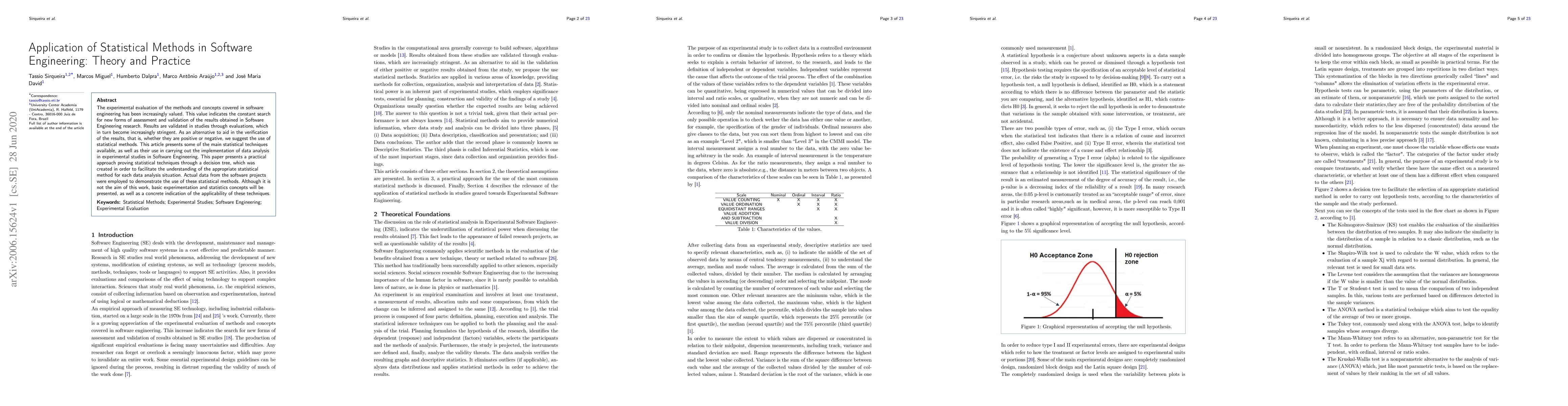 The experimental evaluation of the methods and concepts covered in software engineering has been increasingly valued. This value indicates the constant search for new forms of assessment and validation of the results obtained in Software Engineering research. Results are validated in studies through evaluations, which in turn become increasingly stringent. As an alternative to aid in the verification of the results, that is, whether they are positive or negative, we suggest the use of statistical methods. This article presents some of the main statistical techniques available, as well as their use in carrying out the implementation of data analysis in experimental studies in Software Engineering. This paper presents a practical approach proving statistical techniques through a decision tree, which was created in order to facilitate the understanding of the appropriate statistical method for each data analysis situation. Actual data from the software projects were employed to demonstrate the use of these statistical methods. Although it is not the aim of this work, basic experimentation and statistics concepts will be presented, as well as a concrete indication of the applicability of these techniques.