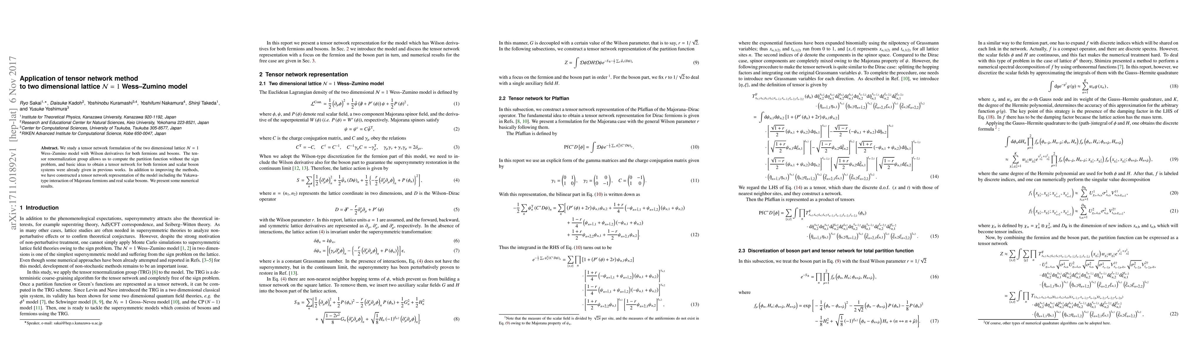 This paper applies tensor network methods to the two-dimensional lattice $\mathcal{N}=1$ Wess-Zumino model, utilizing the tensor renormalization group to compute the partition function without encountering the sign problem. It extends previous work by incorporating Yukawa-type interactions and presents numerical results.