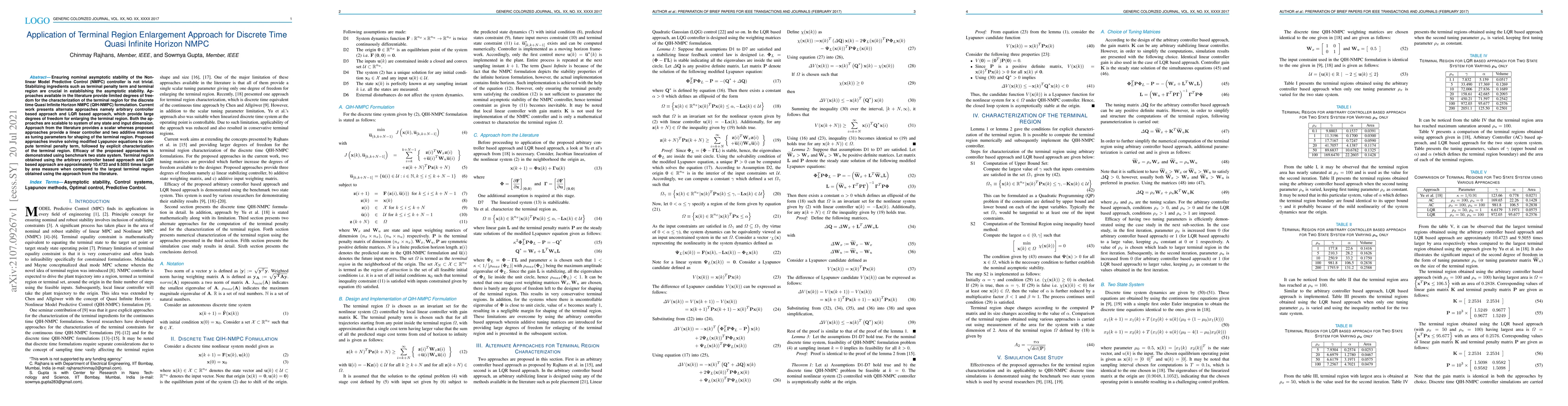 Ensuring nominal asymptotic stability of the Non-linear Model Predictive Control (NMPC) controller is not trivial. Stabilizing ingredients such as terminal penalty term and terminal region are crucial in establishing the asymptotic stability. Approaches available in the literature provide limited degrees of freedom for the characterization of the terminal region for the discrete time Quasi Infinite Horizon NMPC (QIH-NMPC) formulation. Current work presents alternate approaches namely arbitrary controller based approach and LQR based approach, which provide large degrees of freedom for enlarging the terminal region. Both the approaches are scalable to system of any state and input dimension. Approach from the literature provides a scalar whereas proposed approaches provide a linear controller and two additive matrices as tuning parameters for shaping of the terminal region. Proposed approaches involve solving modified Lyapunov equations to compute terminal penalty term, followed by explicit characterization of the terminal region. Efficacy of the proposed approaches is demonstrated using benchmark two state system. Terminal region obtained using the arbitrary controller based approach and LQR based approach are approximately 10.4723 and 9.5055 times larger by area measure when compared to the largest terminal region obtained using the approach from the literature.