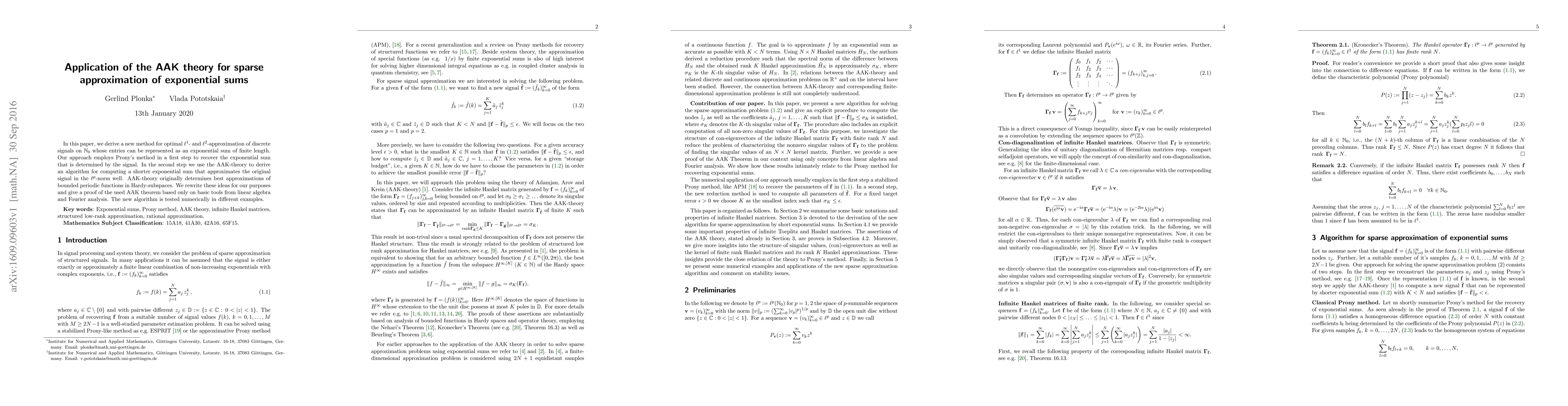 In this paper, we derive a new method for optimal $\ell^{1}$- and $\ell^2$-approximation of discrete signals on ${\mathbb N}_{0}$ whose entries can be represented as an exponential sum of finite length. Our approach employs Prony's method in a first step to recover the exponential sum that is determined by the signal. In the second step we use the AAK-theory to derive an algorithm for computing a shorter exponential sum that approximates the original signal in the $\ell^{p}$-norm well. AAK-theory originally determines best approximations of bounded periodic functions in Hardy-subspaces. We rewrite these ideas for our purposes and give a proof of the used AAK theorem based only on basic tools from linear algebra and Fourier analysis. The new algorithm is tested numerically in different examples.