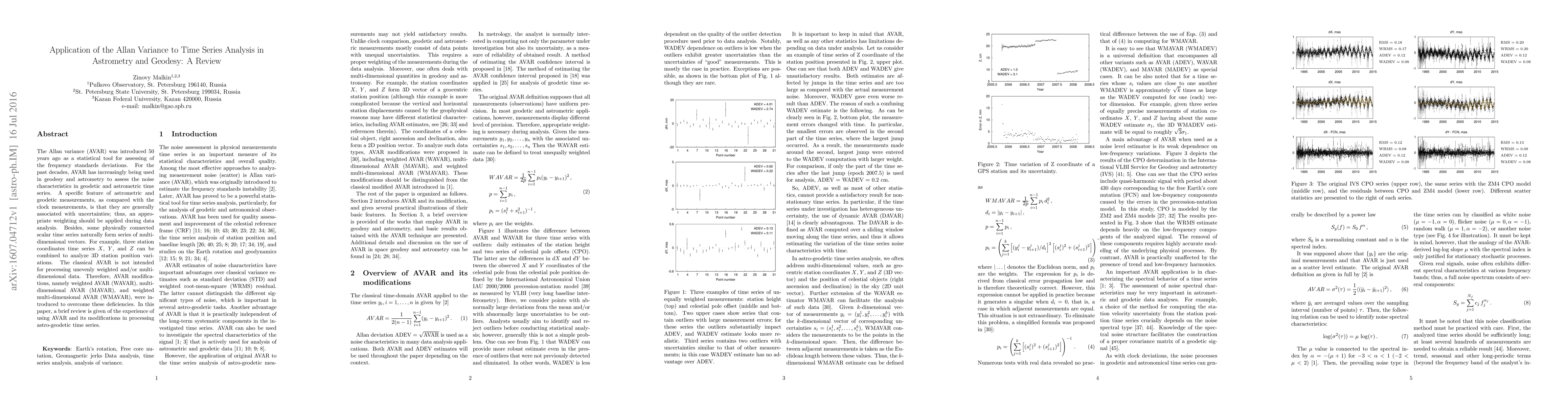 This paper reviews the application of the Allan variance (AVAR) and its modifications—weighted, multi-dimensional, and weighted multi-dimensional AVAR—to analyze noise characteristics in astrometric and geodetic time series, addressing the unique challenges of unevenly weighted and multi-dimensional data.