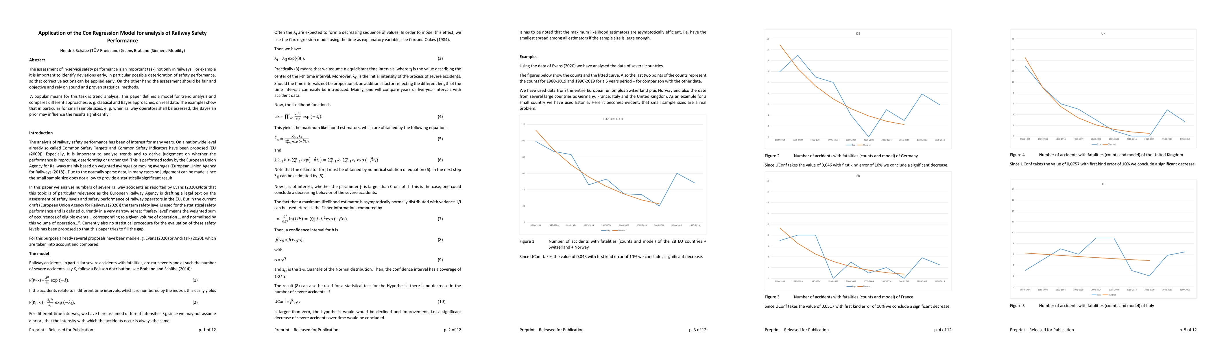 This paper applies the Cox Regression Model to analyze railway safety performance trends, comparing classical and Bayesian approaches on real data. It finds that Bayesian priors significantly influence results, especially for small sample sizes, highlighting the importance of fair and objective statistical methods in safety assessments.