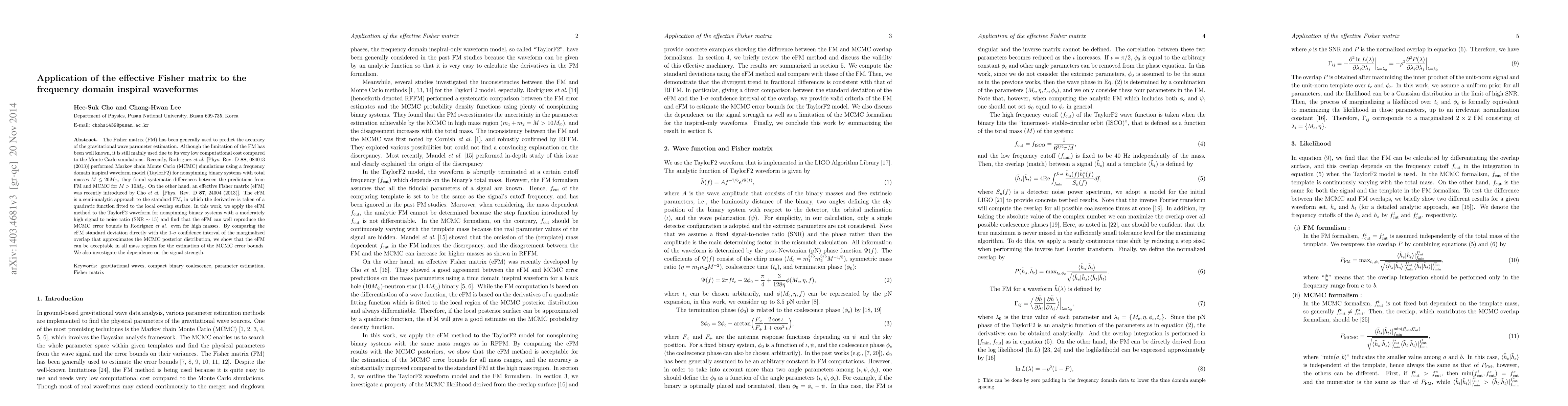 This paper applies the effective Fisher matrix (eFM) method to frequency domain inspiral waveforms, demonstrating that it provides accurate error bounds for gravitational wave parameter estimation, especially for nonspinning binary systems, compared to Markov chain Monte Carlo simulations. The study highlights the importance of considering template-dependent frequency cutoffs in the eFM approach.