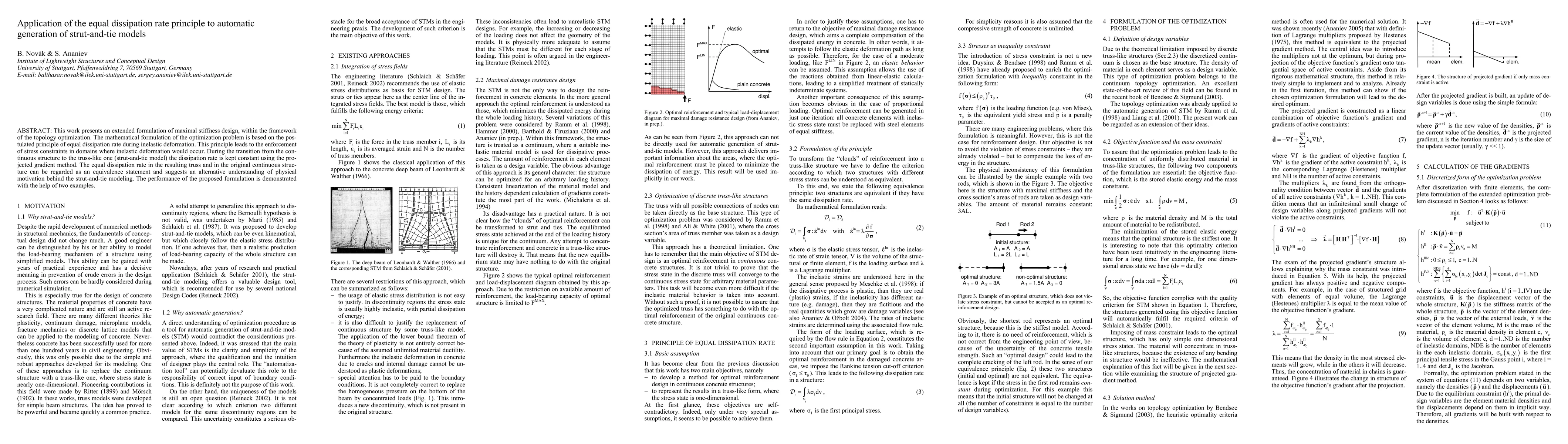 This work presents an extended formulation of maximal stiffness design, within the framework of the topology optimization. The mathematical formulation of the optimization problem is based on the postulated principle of equal dissipation rate during inelastic deformation. This principle leads to the enforcement of stress constraints in domains where inelastic deformation would occur. During the transition from the continuous structure to the truss-like one (strut-and-tie model) the dissipation rate is kept constant using the projected gradient method. The equal dissipation rate in the resulting truss and in the original continuous structure can be regarded as an equivalence statement and suggests an alternative understanding of physical motivation behind the strut-and-tie modeling. The performance of the proposed formulation is demonstrated with the help of two examples.