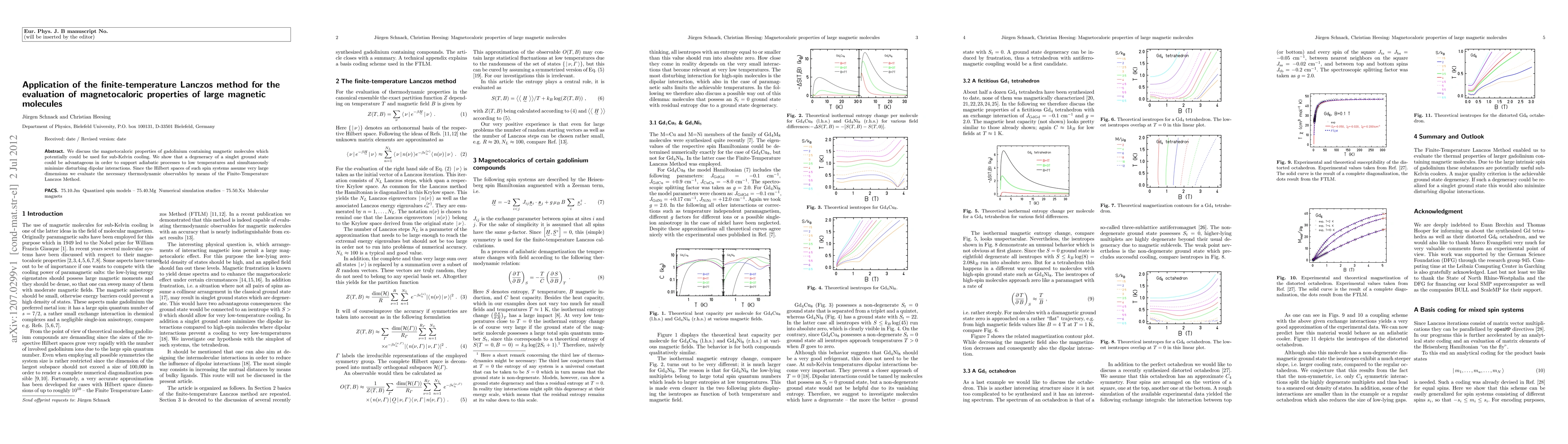 We discuss the magnetocaloric properties of gadolinium containing magnetic molecules which potentially could be used for sub-Kelvin cooling. We show that a degeneracy of a singlet ground state could be advantageous in order to support adiabatic processes to low temperatures and simultaneously minimize disturbing dipolar interactions. Since the Hilbert spaces of such spin systems assume very large dimensions we evaluate the necessary thermodynamic observables by means of the Finite-Temperature Lanczos Method.