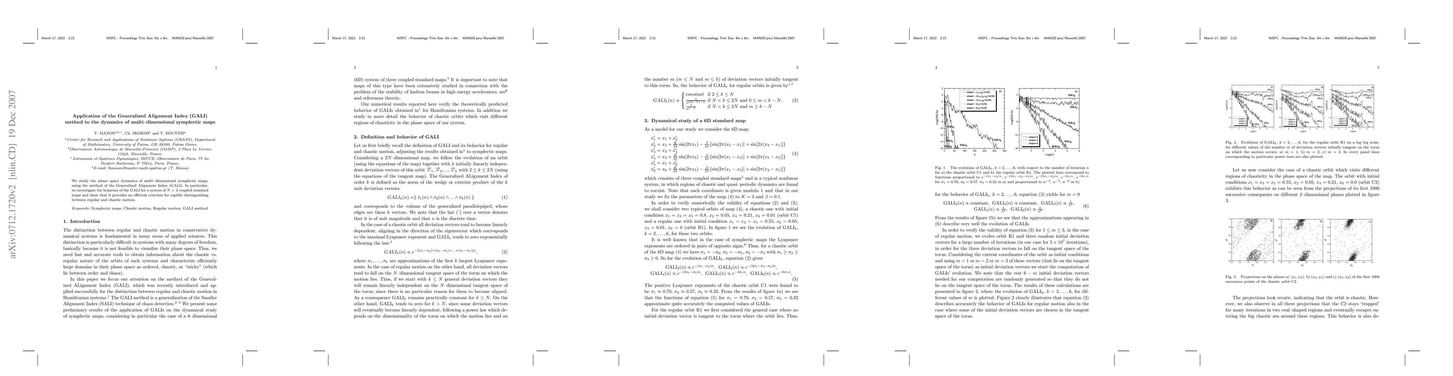 This paper applies the Generalized Alignment Index (GALI) method to analyze the dynamics of multi-dimensional symplectic maps, demonstrating its effectiveness in distinguishing between regular and chaotic motion in a system of three coupled standard maps.