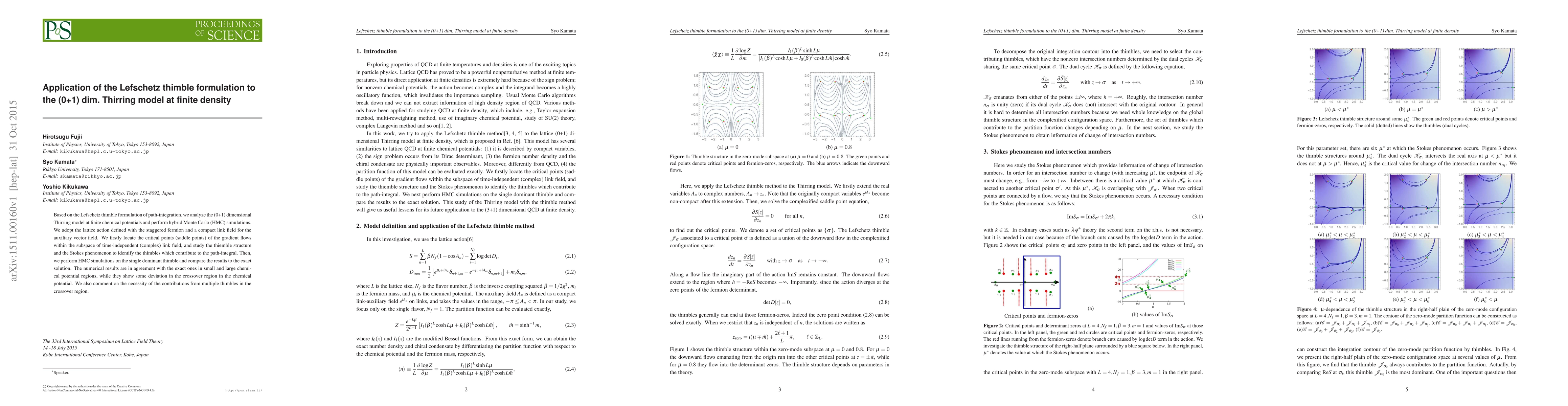 Based on the Lefschetz thimble formulation of path-integration, we analyze the (0+1) dimensional Thirring model at finite chemical potentials and perform hybrid Monte Carlo (HMC) simulations. We adopt the lattice action defined with the staggered fermion and a compact link field for the auxiliary vector field. We firstly locate the critical points (saddle points) of the gradient flows within the subspace of time-independent (complex) link field, and study the thiemble structure and the Stokes phenomenon to identify the thimbles which contribute to the path-integral. Then, we perform HMC simulations on the single dominant thimble and compare the results to the exact solution. The numerical results are in agreement with the exact ones in small and large chemical potential regions, while they show some deviation in the crossover region in the chemical potential. We also comment on the necessity of the contributions from multiple thimbles in the crossover region.