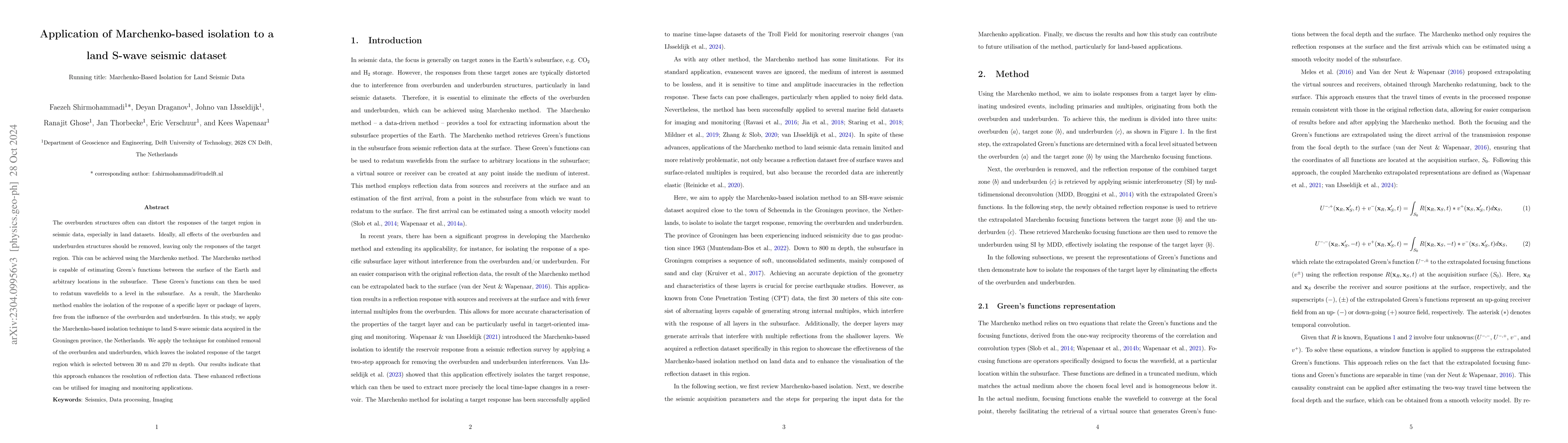 The Marchenko method is applied to land S-wave seismic data in the Groningen province to isolate subsurface reflections, enhancing resolution and eliminating internal multiples. This technique shows promise for improved imaging and monitoring by reducing the influence of overburden and underburden.