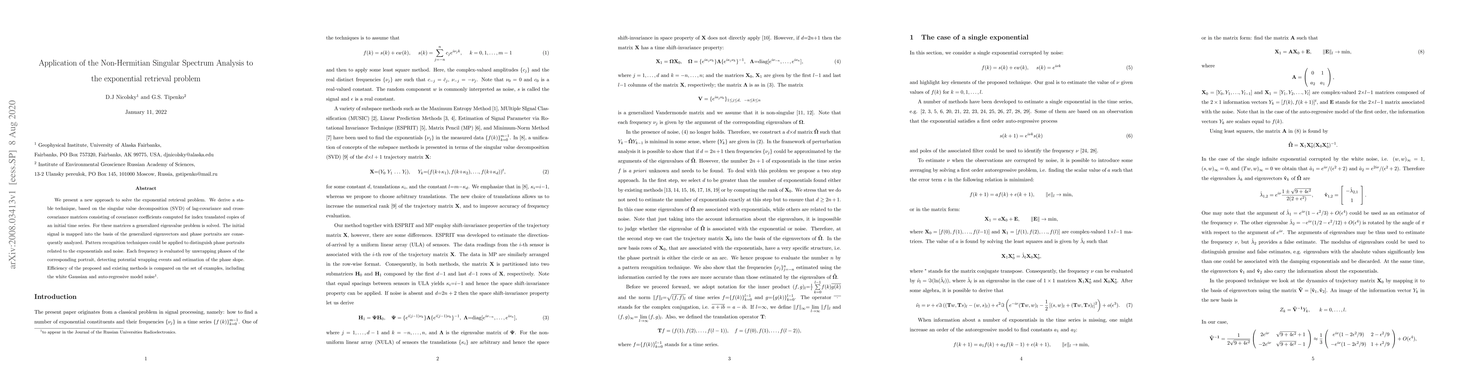This paper introduces a new approach to solve the exponential retrieval problem using Non-Hermitian Singular Spectrum Analysis, offering a stable method for mapping initial signals into phase portraits and estimating phase slopes with potential wrapping events.