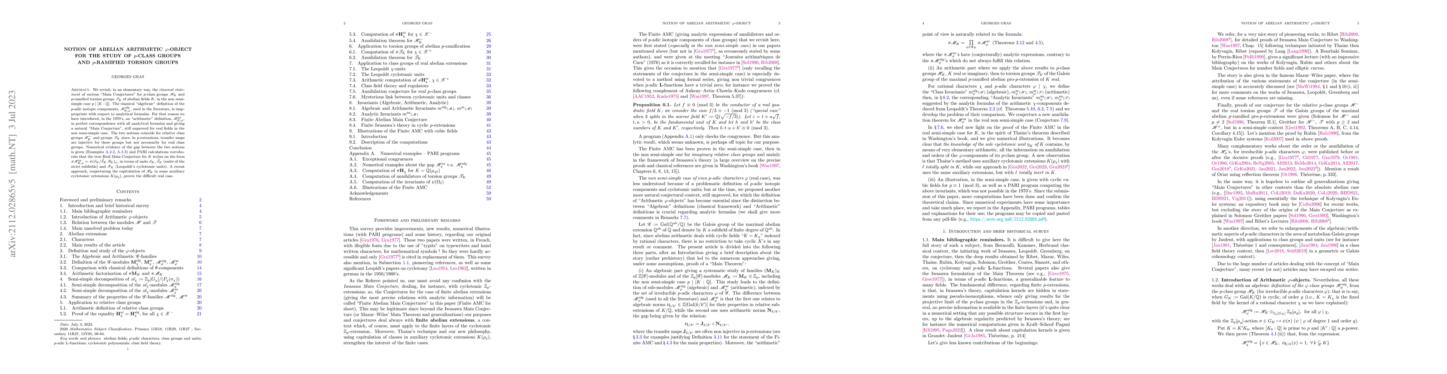 This paper revisits the classical "Main Conjectures" for $p$-class groups and $p$-ramified torsion groups in abelian fields, proposing an "arithmetic" definition that aligns with analytical formulas. It highlights the distinction between this new definition and the classical "algebraic" one, providing numerical evidence of their divergence and supporting the conjectured form of the Real Main Conjecture.