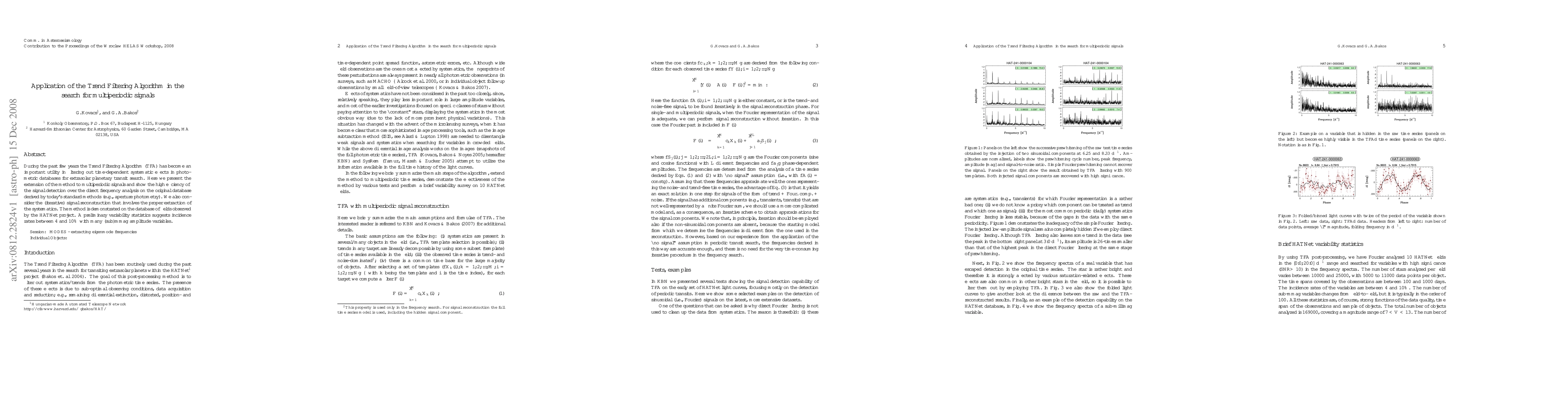 During the past few years the Trend Filtering Algorithm (TFA) has become an important utility in filtering out time-dependent systematic effects in photometric databases for extrasolar planetary transit search. Here we present the extension of the method to multiperiodic signals and show the high efficiency of the signal detection over the direct frequency analysis on the original database derived by today's standard methods (e.g., aperture photometry). We also consider the (iterative) signal reconstruction that involves the proper extraction of the systematics. The method is demonstrated on the database of fields observed by the HATNet project. A preliminary variability statistics suggests incidence rates between 4 and 10% with many (sub)mmag amplitude variables.