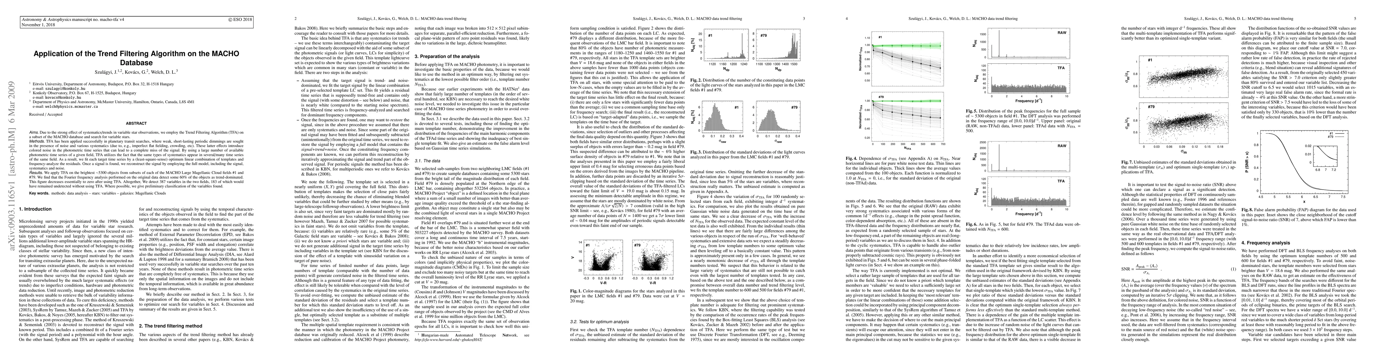 Due to the strong effect of systematics/trends in variable star observations, we employ the Trend Filtering Algorithm (TFA) on a subset of the MACHO database and search for variable stars. TFA has been applied successfully in planetary transit searches, where weak, short-lasting periodic dimmings are sought in the presence of noise and various systematics (due to, e.g., imperfect flat fielding, crowding, etc). These latter effects introduce colored noise in the photometric time series that can lead to a complete miss of the signal. By using a large number of available photometric time series of a given field, TFA utilizes the fact that the same types of systematics appear in several/many time series of the same field. As a result, we fit each target time series by a (least-square-sense) optimum linear combination of templates and frequency-analyze the residuals. Once a signal is found, we reconstruct the signal by employing the full model, including the signal, systematics and noise. We apply TFA on the brightest ~5300 objects from subsets of each of the MACHO Large Magellanic Cloud fields #1 and #79. We find that the Fourier frequency analysis performed on the original data detect some 60% of the objects as trend-dominated. This figure decreases essentially to zero after using TFA. Altogether, We detect 387 variables in the two fields, 183 of which would have remained undetected without using TFA. Where possible, we give preliminary classification of the variables found.