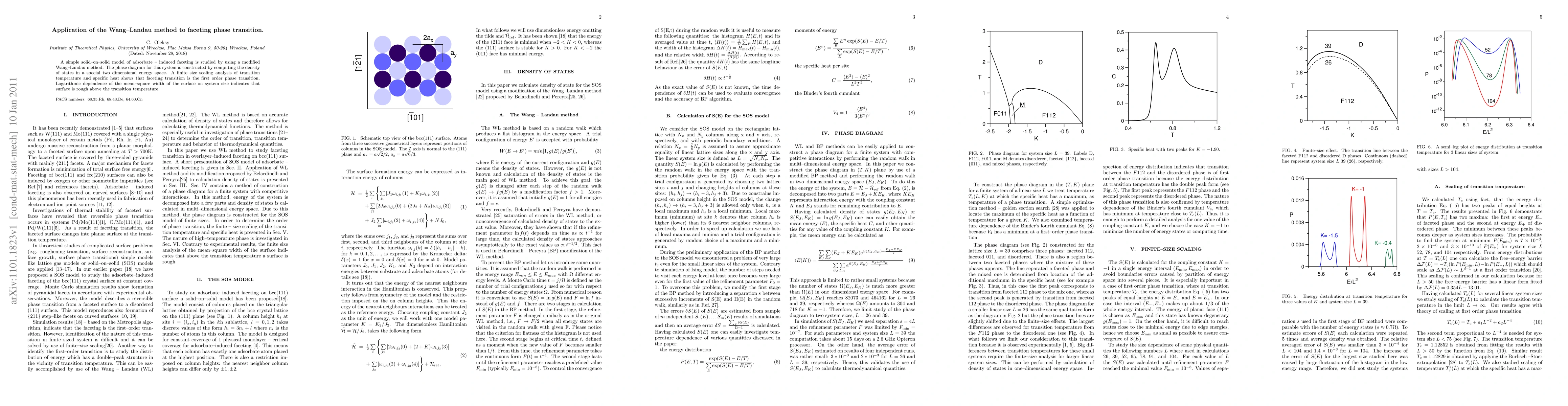 A simple solid-on-solid model of adsorbate-induced faceting is studied by using a modified Wang-Landau method. The phase diagram for this system is constructed by computing the density of states in a special two-dimensional energy space. A finite--size scaling analysis of transition temperature and specific heat shows that faceting transition is the first order phase transition. Logarithmic dependence of the mean-square width of the surface on system size indicates that surface is rough above the transition temperature.