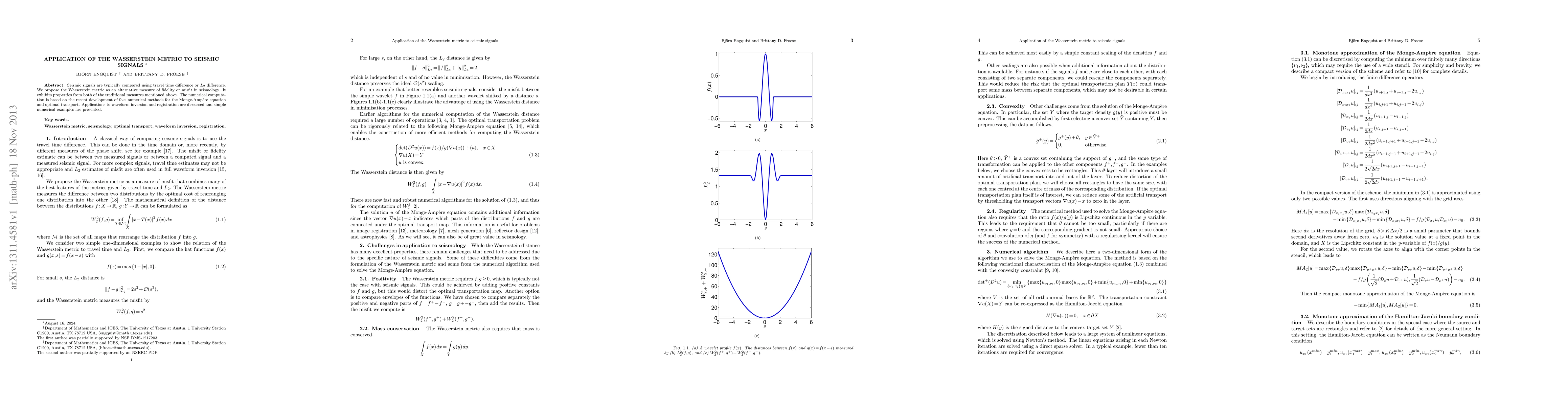 This paper proposes using the Wasserstein metric as an alternative to traditional measures for comparing seismic signals, leveraging recent advances in optimal transport theory. It discusses applications in waveform inversion and registration, supported by simple numerical examples.