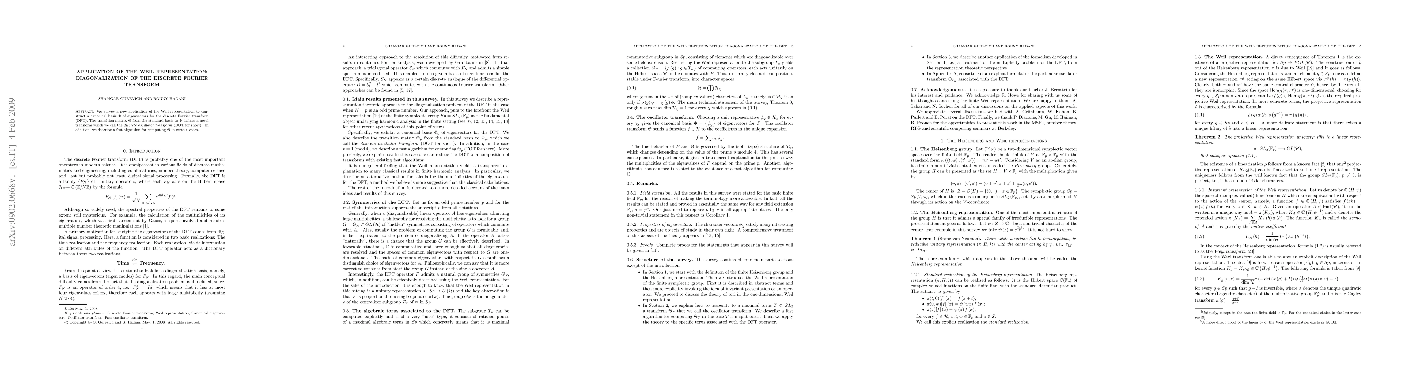 We survey a new application of the Weil representation to construct a canonical basis of eigenvectors for the discrete Fourier transform (DFT). The transition matrix from the standard basis to the canonical basis defines a novel transform which we call the discrete oscillator transform (DOT for short). In addition, we describe a fast algorithm for computing the DOT in certain cases.