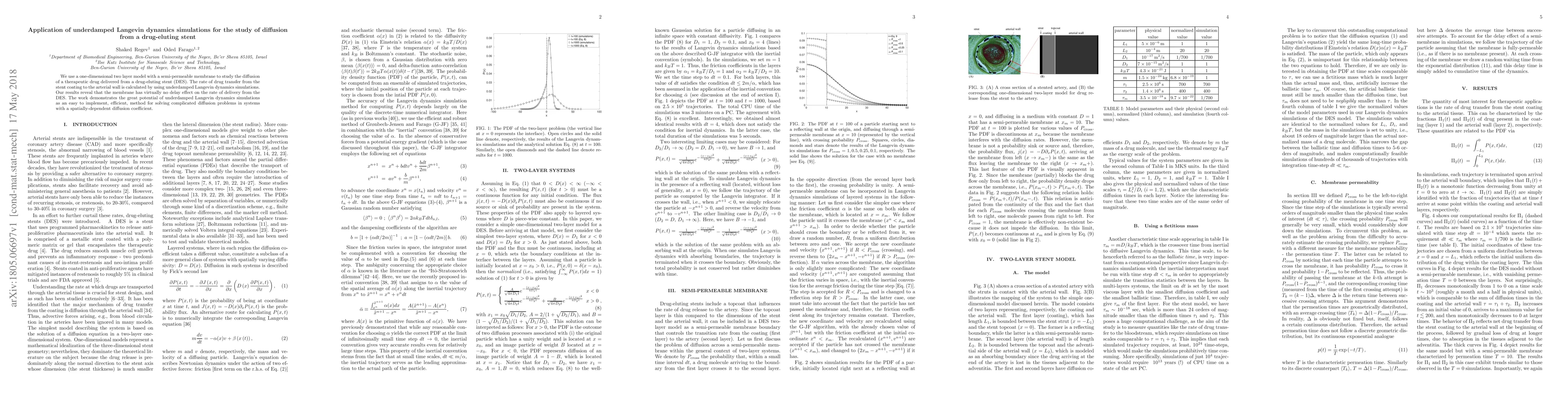 Summary: This study employs underdamped Langevin dynamics simulations to model drug diffusion from a drug-eluting stent, showing negligible membrane delay in drug transfer, and highlights the method's efficiency for solving complex diffusion problems.