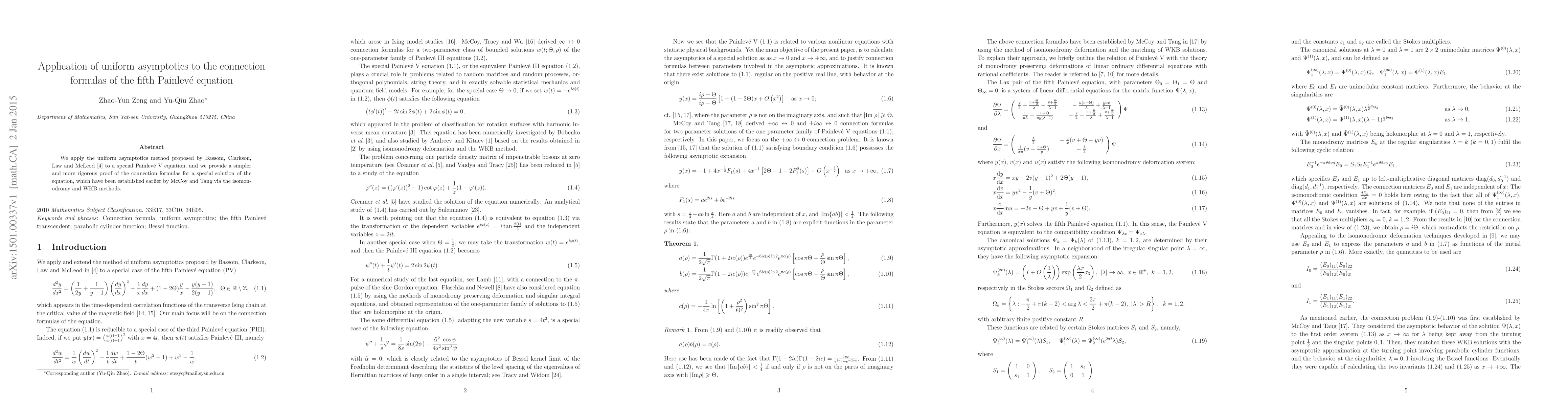 This paper applies the uniform asymptotics method to derive simpler and more rigorous connection formulas for a special solution of the fifth Painlevé equation, improving upon earlier proofs by McCoy and Tang using isomonodromy and WKB methods.