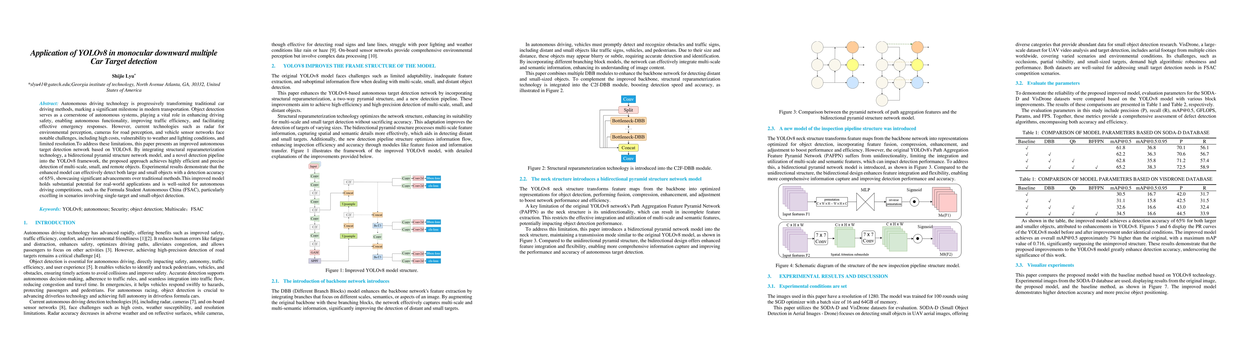 The paper presents an improved autonomous target detection network based on YOLOv8, integrating structural reparameterization technology, a bidirectional pyramid structure network model, and a novel detection pipeline.