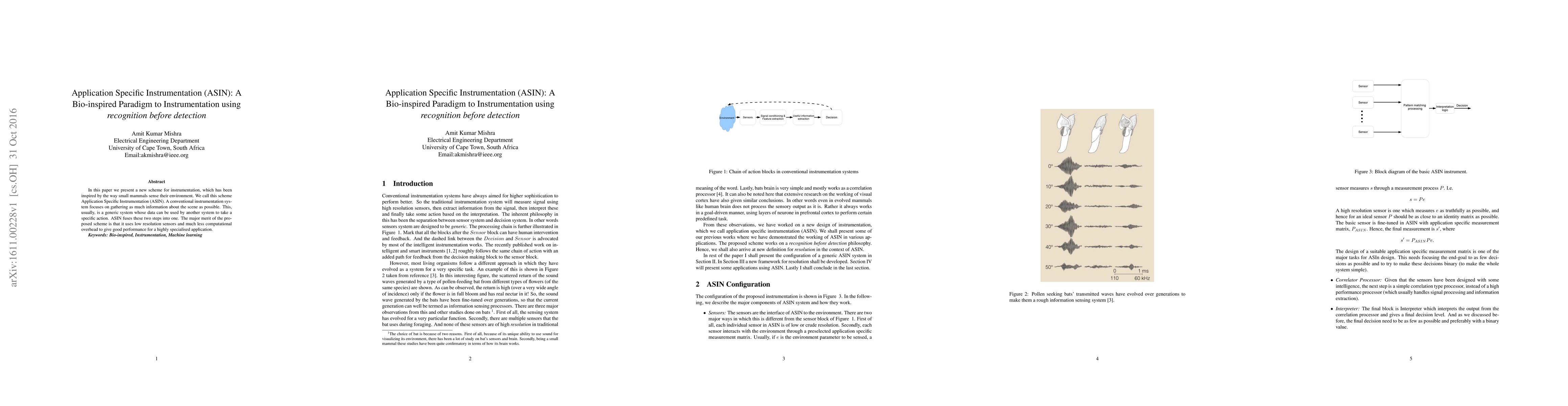 In this paper we present a new scheme for instrumentation, which has been inspired by the way small mammals sense their environment. We call this scheme Application Specific Instrumentation (ASIN). A conventional instrumentation system focuses on gathering as much information about the scene as possible. This, usually, is a generic system whose data can be used by another system to take a specific action. ASIN fuses these two steps into one. The major merit of the proposed scheme is that it uses low resolution sensors and much less computational overhead to give good performance for a highly specialised application