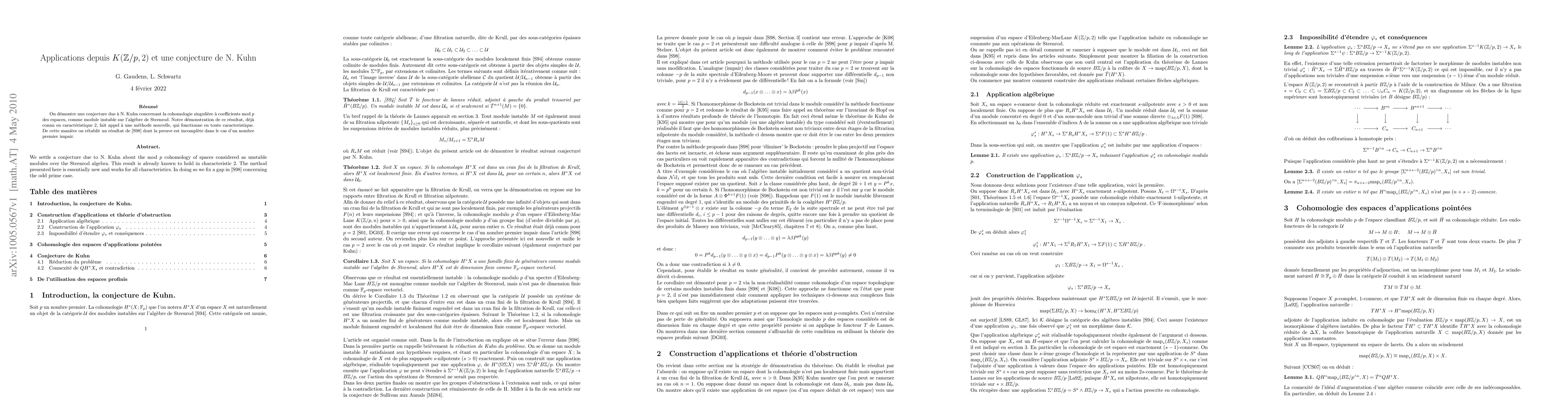 On d\'emontre une conjecture due \`a N. Kuhn concernant la cohomologie singuli\`ere \`a coefficients mod p des espaces, comme module instable sur l'alg\`ebre de Steenrod. Notre d\'emonstration de ce r\'esultat, d\'ej\`a connu en caract\'eristique 2, fait appel \`a une m\'ethode nouvelle, qui fonctionne en toute caract\'eristique. De cette mani\`ere on r\'etablit le r\'esultat de [S98] dont la preuve est incompl\`ete dans le cas d'un nombre premier impair. We settle a conjecture due to N. Kuhn about the mod p cohomology of spaces considered as unstable modules over the Steenrod algebra. This result is already known to hold in characteristic 2. The method presented here is essentially new and works for all characteristics. In doing so we fix a gap in [S98] concerning the odd prime case.