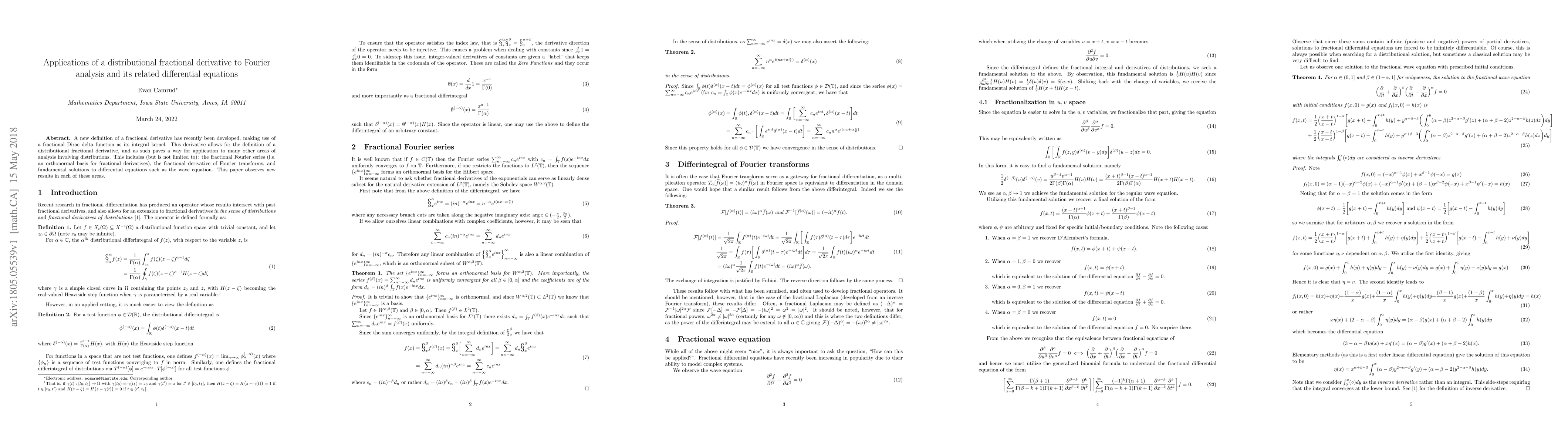 Researchers introduce a new definition of a fractional derivative using a fractional Dirac delta function, enabling applications to Fourier analysis and related differential equations like the wave equation.