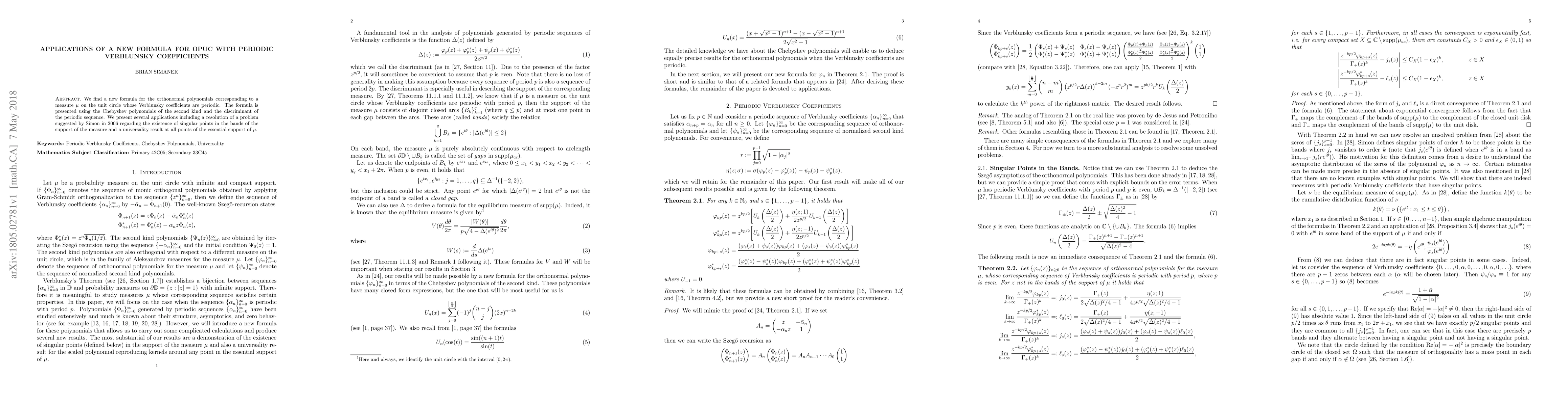 Researchers discovered a new formula for orthonormal polynomials on the unit circle with periodic Verblunsky coefficients, resolving a 2006 problem and demonstrating universality across its essential support.