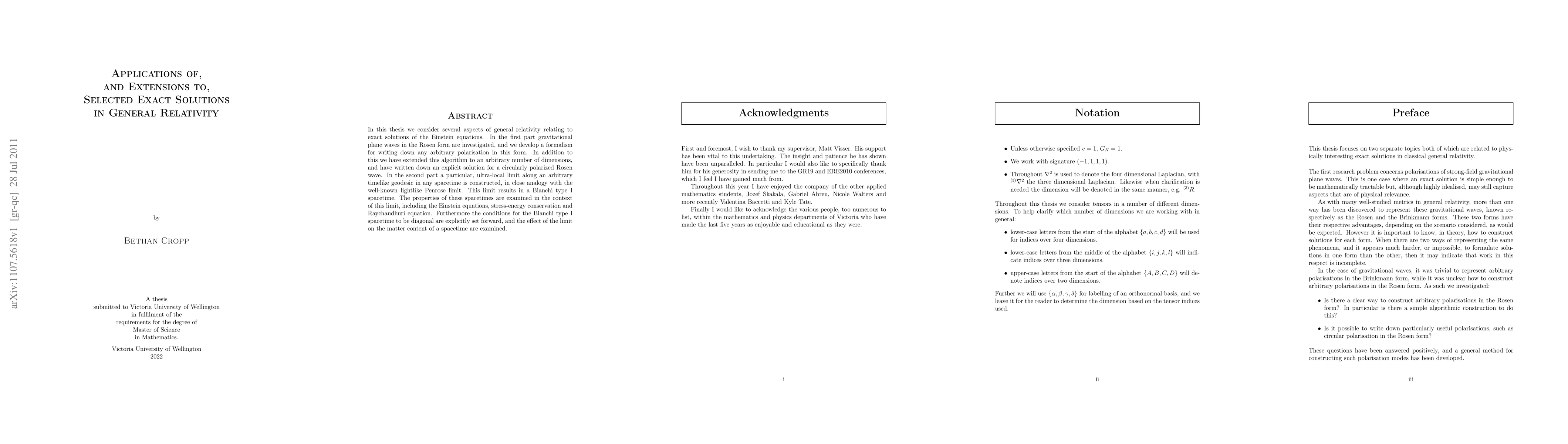 In this thesis we consider several aspects of general relativity relating to exact solutions of the Einstein equations. In the first part gravitational plane waves in the Rosen form are investigated, and we develop a formalism for writing down any arbitrary polarisation in this form. In addition to this we have extended this algorithm to an arbitrary number of dimensions, and have written down an explicit solution for a circularly polarized Rosen wave. In the second part a particular, ultra-local limit along an arbitrary timelike geodesic in any spacetime is constructed, in close analogy with the well-known lightlike Penrose limit. This limit results in a Bianchi type I spacetime. The properties of these spacetimes are examined in the context of this limit, including the Einstein equations, stress-energy conservation and Raychaudhuri equation. Furthermore the conditions for the Bianchi type I spacetime to be diagonal are explicitly set forward, and the effect of the limit on the matter content of a spacetime are examined.