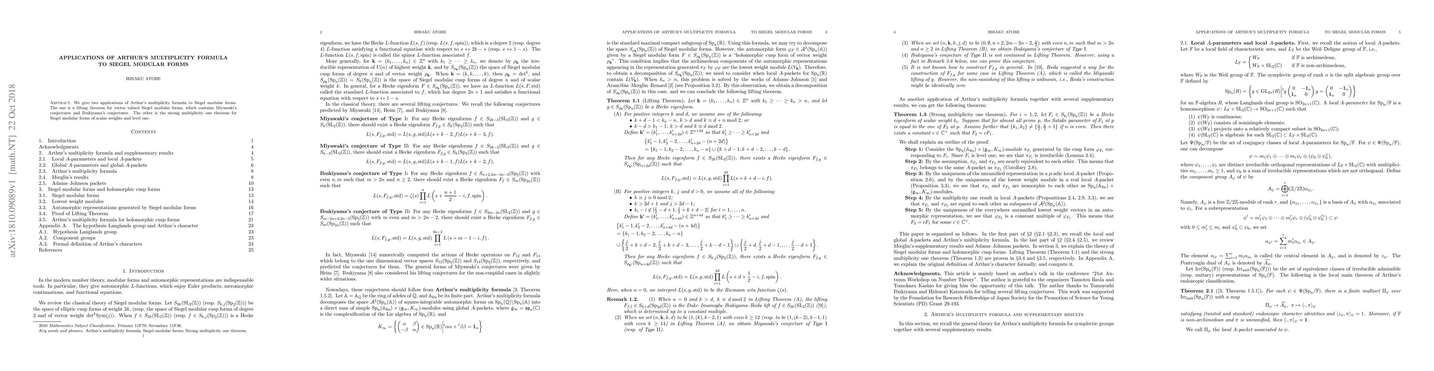 We give two applications of Arthur's multiplicity formula to Siegel modular forms. The one is a lifting theorem for vector valued Siegel modular forms, which contains Miyawaki's conjectures and Ibukiyama's conjectures. The other is the strong multiplicity one theorem for Siegel modular forms of scalar weights and level one.