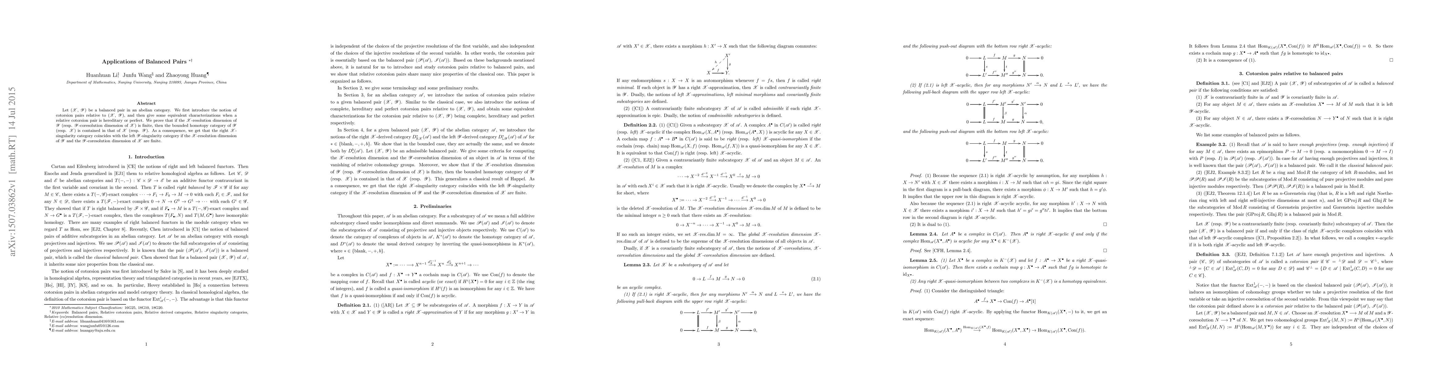 Let $(\mathscr{X}$, $\mathscr{Y})$ be a balanced pair in an abelian category. We first introduce the notion of cotorsion pairs relative to $(\mathscr{X}$, $\mathscr{Y})$, and then give some equivalent characterizations when a relative cotorsion pair is hereditary or perfect. We prove that if the $\mathscr{X}$-resolution dimension of $\mathscr{Y}$ (resp. $\mathscr{Y}$-coresolution dimension of $\mathscr{X}$) is finite, then the bounded homotopy category of $\mathscr{Y}$ (resp. $\mathscr{X}$) is contained in that of $\mathscr{X}$ (resp. $\mathscr{Y}$). As a consequence, we get that the right $\mathscr{X}$-singularity category coincides with the left $\mathscr{Y}$-singularity category if the $\mathscr{X}$-resolution dimension of $\mathscr{Y}$ and the $\mathscr{Y}$-coresolution dimension of $\mathscr{X}$ are finite.