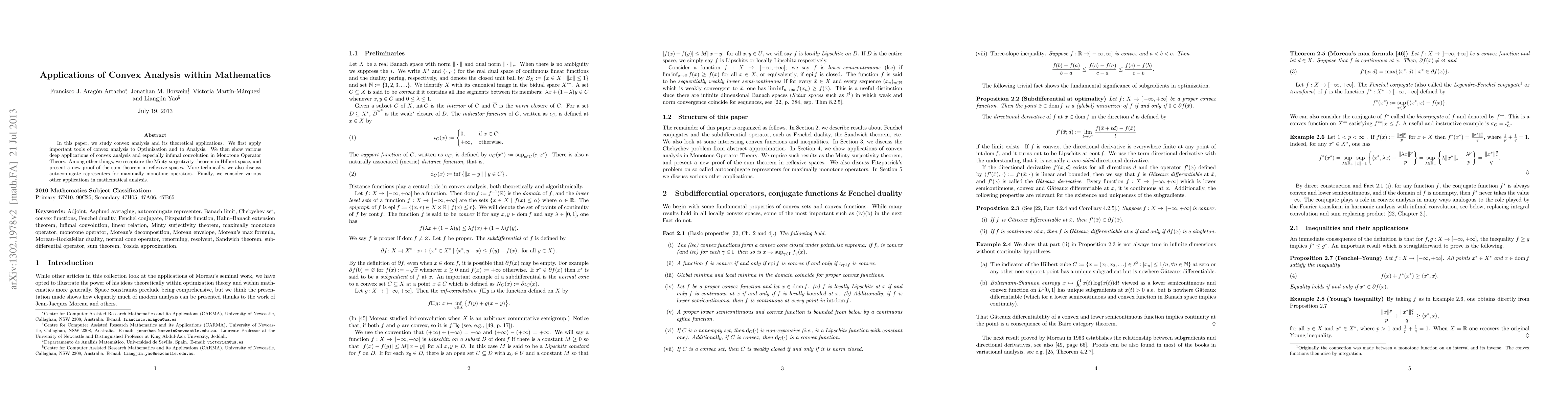 This paper explores the theoretical applications of convex analysis, demonstrating its utility in optimization, analysis, and monotone operator theory, including a new proof of the sum theorem in reflexive spaces and the recapture of the Minty surjectivity theorem in Hilbert spaces. It also discusses autoconjugate representers for maximally monotone operators.