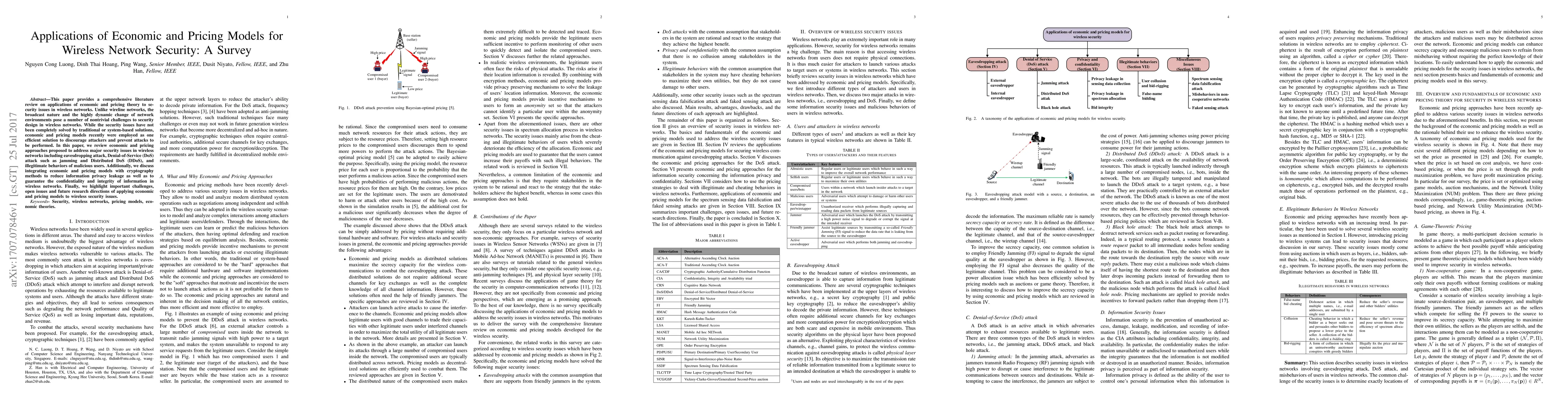 This paper reviews economic and pricing models applied to wireless network security, addressing challenges like eavesdropping and DoS attacks, and discusses integrating these models with cryptography to enhance data confidentiality and integrity. It also outlines remaining challenges and future research directions.
