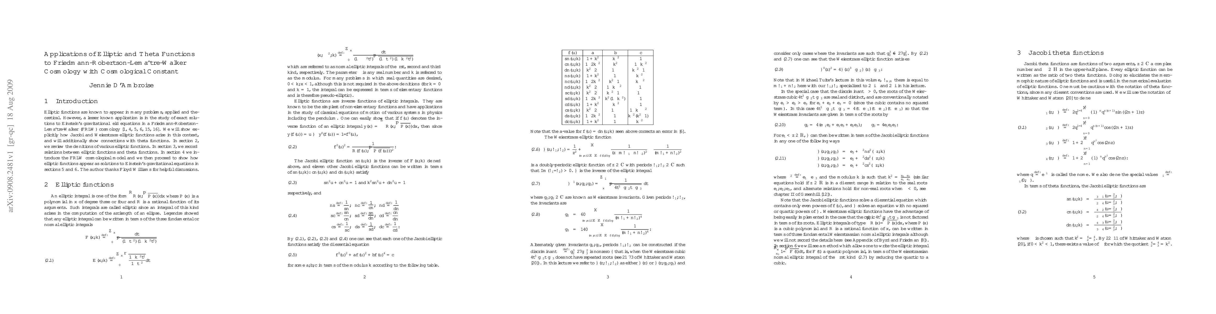 This paper explores the application of elliptic and theta functions in solving the Friedmann-Robertson-Lemaitre-Walker (FRLW) cosmology equations, revealing the emergence of Jacobi and Weierstrass elliptic functions alongside connections to theta functions in the context of a cosmological constant.