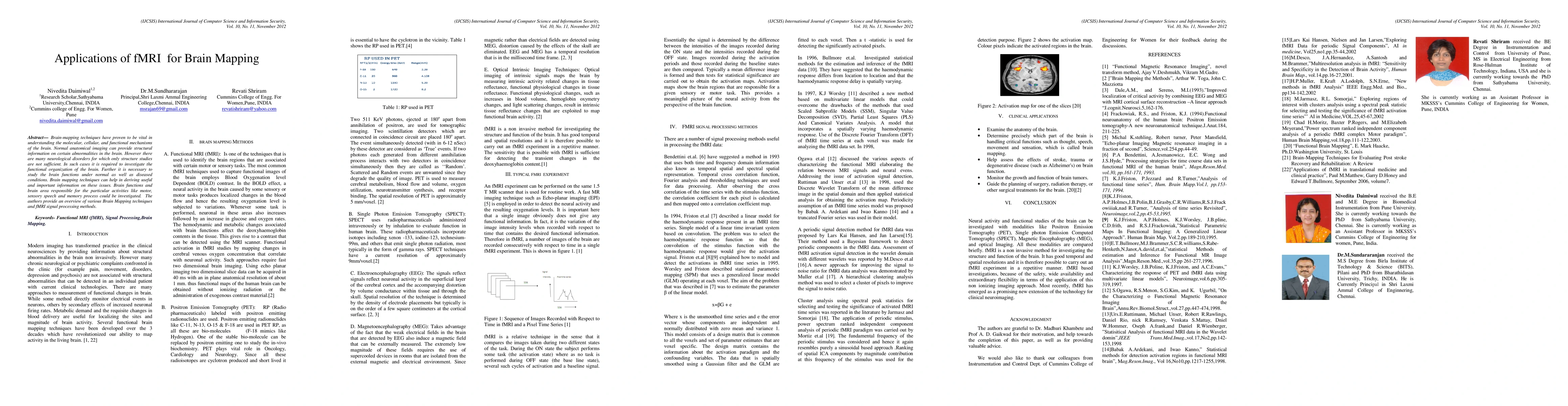 This paper discusses the significance of functional Magnetic Resonance Imaging (fMRI) in brain mapping, highlighting its role in understanding brain functions and areas responsible for specific activities under both normal and diseased conditions. It provides an overview of various brain mapping techniques and fMRI signal processing methods.