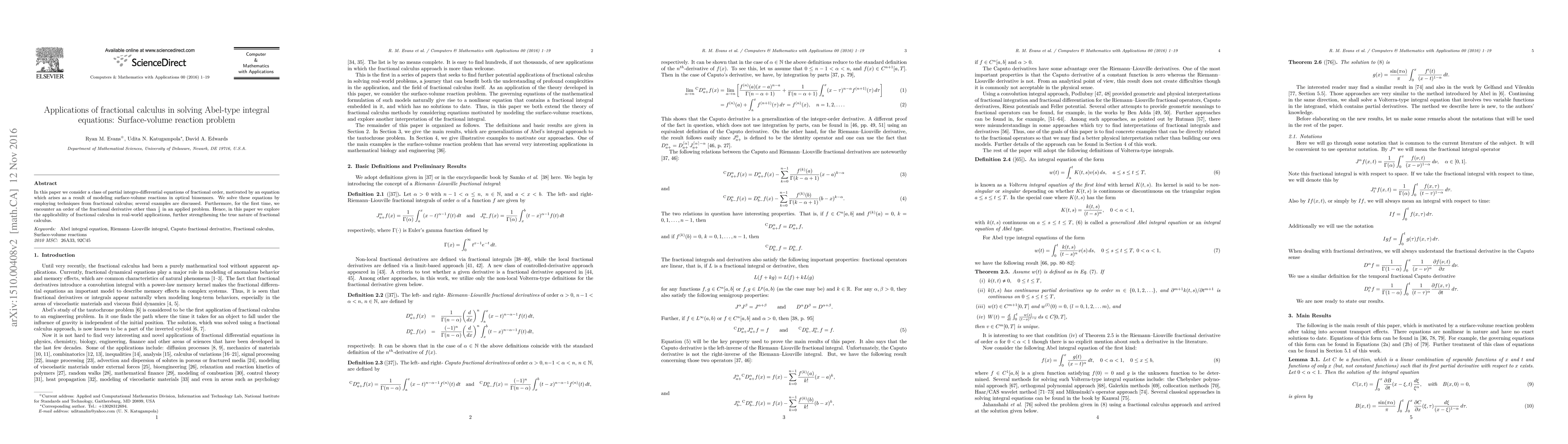 In this paper we consider a class of partial integro-differential equations of fractional order, motivated by an equation which arises as a result of modeling surface-volume reactions in optical biosensors. We solve these equations by employing techniques from fractional calculus; several examples are discussed. Furthermore, for the first time, we encounter an order of the fractional derivative other than $\frac{1}{2}$ in an applied problem. Hence, in this paper we explore the applicability of fractional calculus in real-world applications, further strengthening the true nature of fractional calculus.