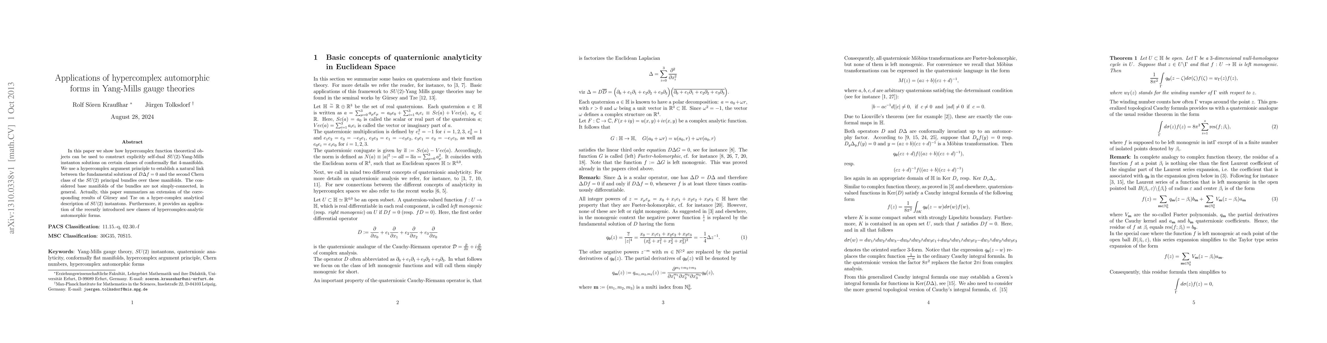 This paper constructs self-dual SU(2)-Yang-Mills instanton solutions using hypercomplex function theory on conformally flat 4-manifolds, linking fundamental solutions of $D \Delta f = 0$ to the second Chern class of SU(2) principal bundles. It extends previous results by applying new hypercomplex-analytic automorphic forms.