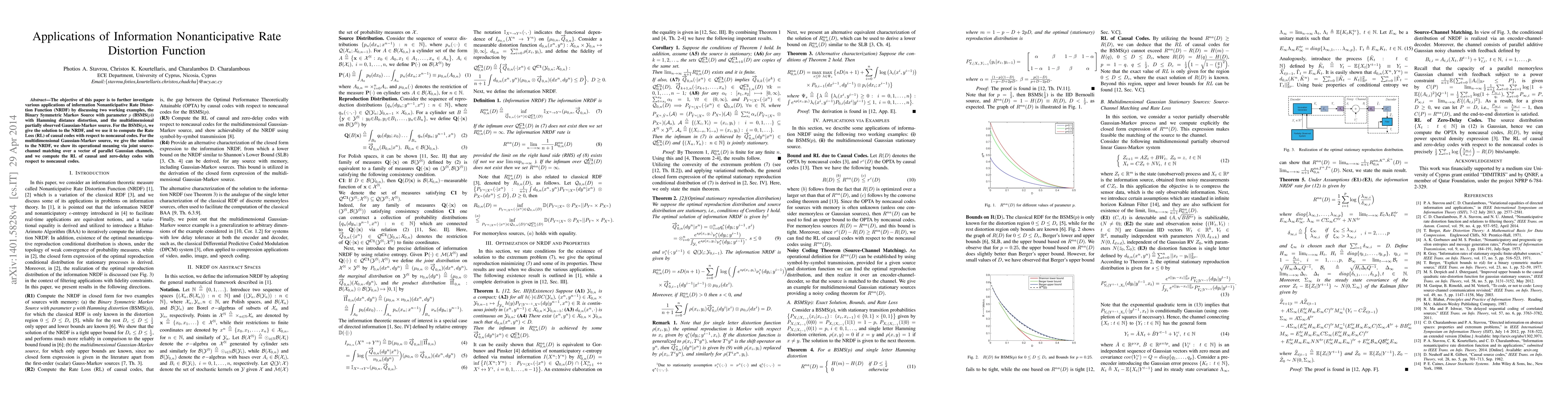The objective of this paper is to further investigate various applications of information Nonanticipative Rate Distortion Function (NRDF) by discussing two working examples, the Binary Symmetric Markov Source with parameter $p$ (BSMS($p$)) with Hamming distance distortion, and the multidimensional partially observed Gaussian-Markov source. For the BSMS($p$), we give the solution to the NRDF, and we use it to compute the Rate Loss (RL) of causal codes with respect to noncausal codes. For the multidimensional Gaussian-Markov source, we give the solution to the NRDF, we show its operational meaning via joint source-channel matching over a vector of parallel Gaussian channels, and we compute the RL of causal and zero-delay codes with respect to noncausal codes.