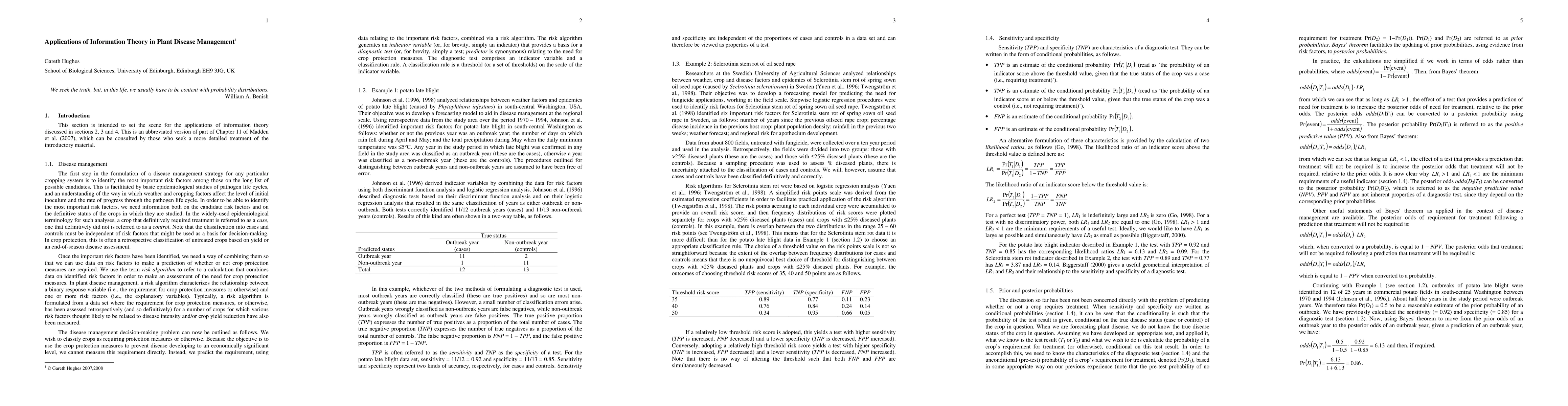 This paper explores how information theory can quantify and analyze the predictive information in plant disease management, offering new methods for better disease prediction and control. It outlines specific applications of this analytical approach in the field.