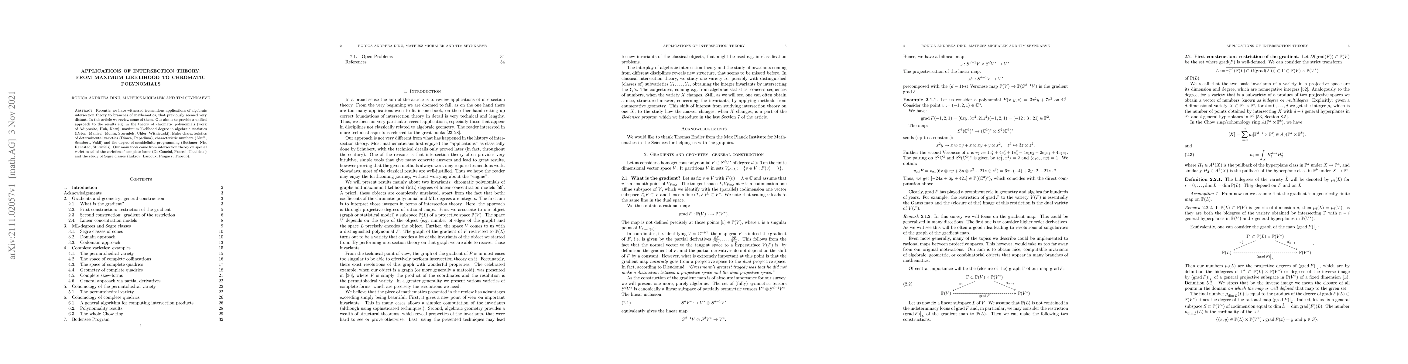 Recently, we have witnessed tremendous applications of algebraic intersection theory to branches of mathematics, that previously seemed very distant. In this article we review some of them. Our aim is to provide a unified approach to the results e.g. in the theory of chromatic polynomials (work of Adiprasito, Huh, Katz), maximum likelihood degree in algebraic statistics (Drton, Manivel, Monin, Sturmfels, Uhler, Wi\'sniewski), Euler characteristics of determinental varieties (Dimca, Papadima), characteristic numbers (Aluffi, Schubert, Vakil) and the degree of semidefinite programming (Bothmer, Nie, Ranestad, Sturmfels). Our main tools come from intersection theory on special varieties called the varieties of complete forms (De Concini, Procesi, Thaddeus) and the study of Segre classes (Laksov, Lascoux, Pragacz, Thorup).