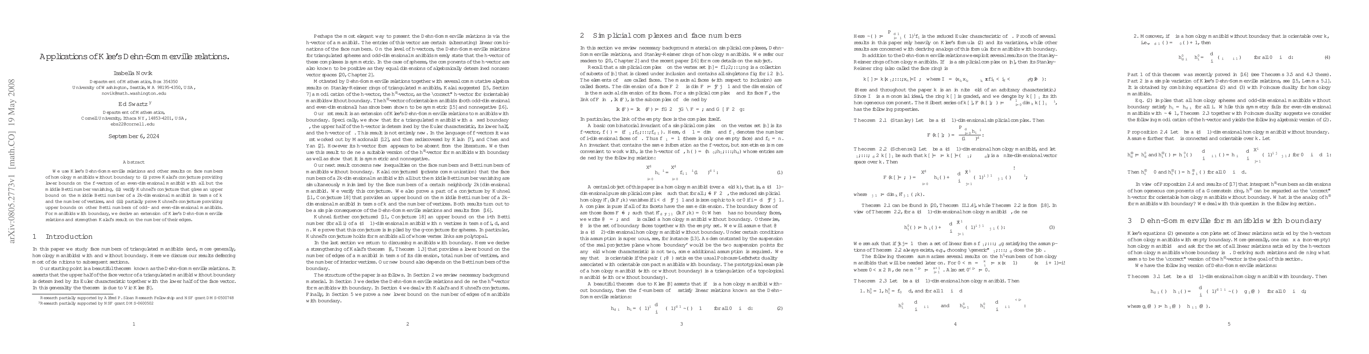 This paper applies Klee's Dehn-Sommerville relations to prove lower bounds on f-vectors for even-dimensional manifolds and verify upper bounds on Betti numbers for both even and odd-dimensional manifolds, extending these results to manifolds with boundary.