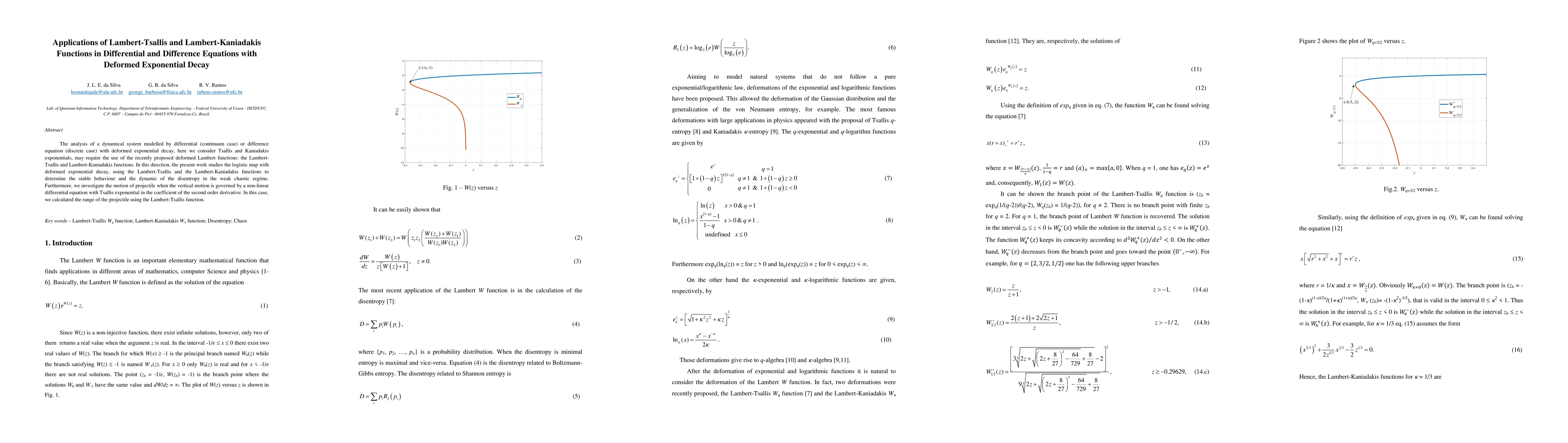 The paper presents the application of Lambert-Tsallis and Lambert-Kaniadakis functions to differential and difference equations with deformed exponential decay, providing a novel method for analyzing chaotic behavior and projectile motion in resistive media.