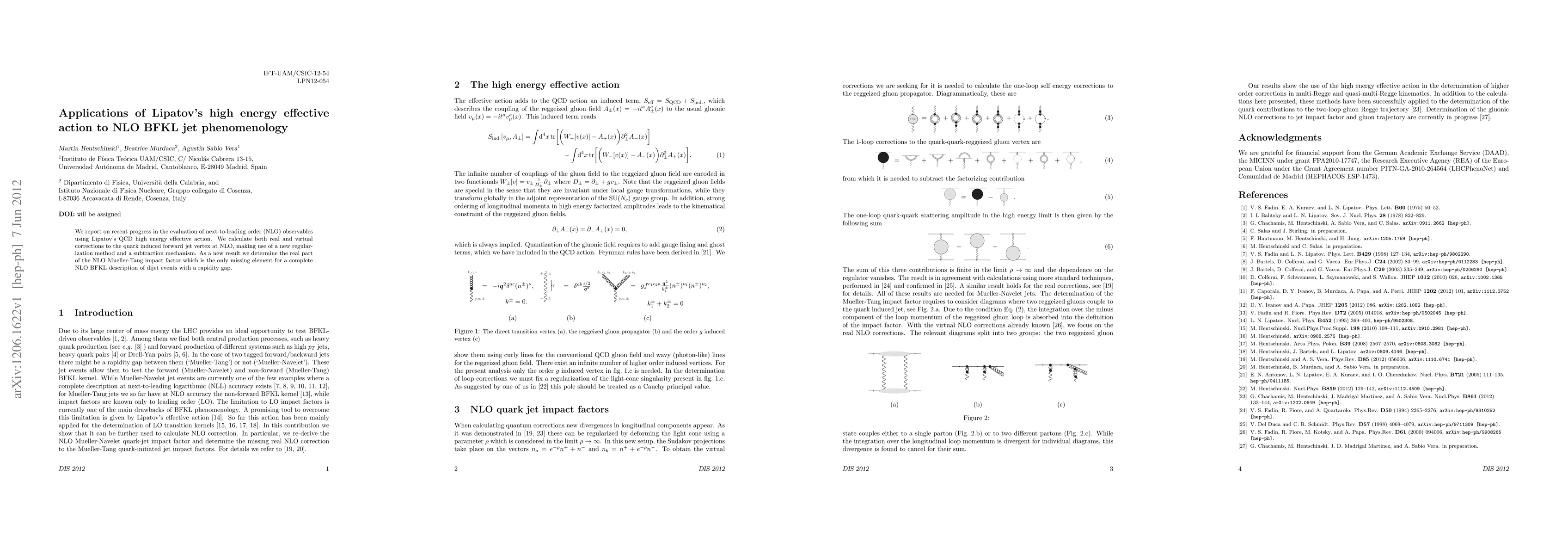 We report on recent progress in the evaluation of next-to-leading order (NLO) observables using Lipatov's QCD high energy effective action. We calculate both real and virtual corrections to the quark induced forward jet vertex at NLO, making use of a new regularization method and a subtraction mechanism. As a new result we determine the real part of the NLO Mueller-Tang impact factor which is the only missing element for a complete NLO BFKL description of dijet events with a rapidity gap.