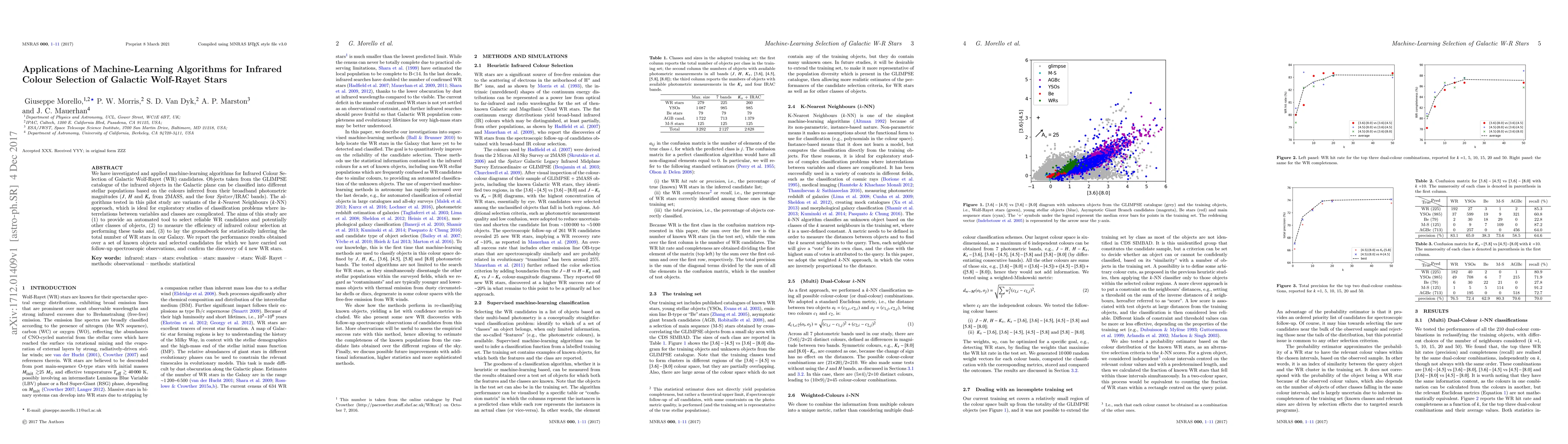 This paper applies machine-learning algorithms, specifically $k$-Nearest Neighbours, to classify Galactic Wolf-Rayet stars from the GLIMPSE catalogue using infrared colour data. The study aims to automate the selection of WR candidates and measure the efficiency of infrared colour selection, confirming the discovery of 4 new WR stars.