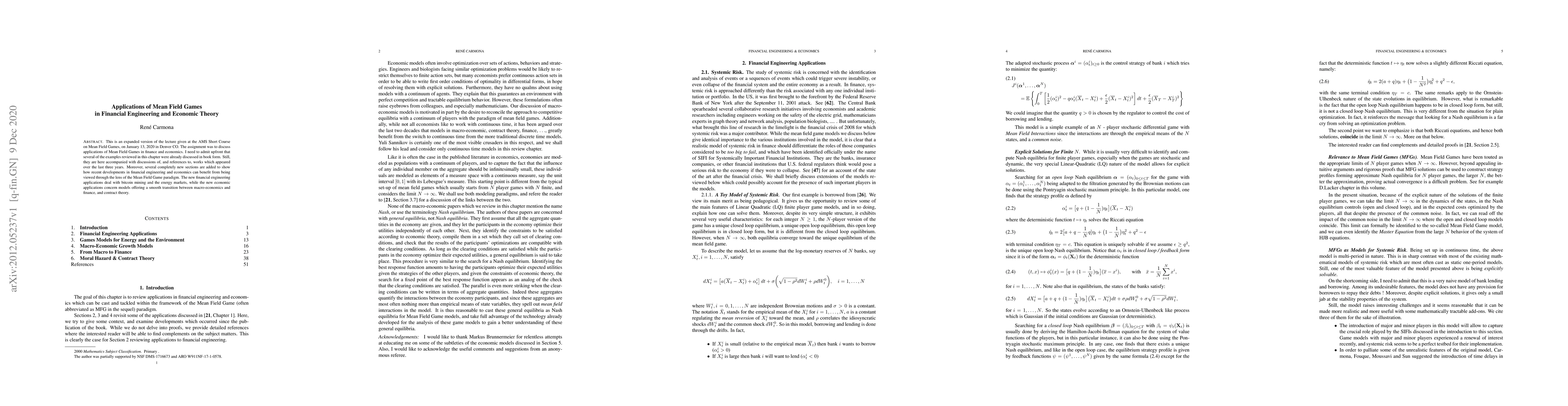This paper expands on a lecture discussing Mean Field Games' applications in finance and economics, highlighting recent developments and new sections on bitcoin mining, energy markets, and connections between macro-economics, finance, and contract theory. It references new works from the past three years and builds on previously discussed examples.