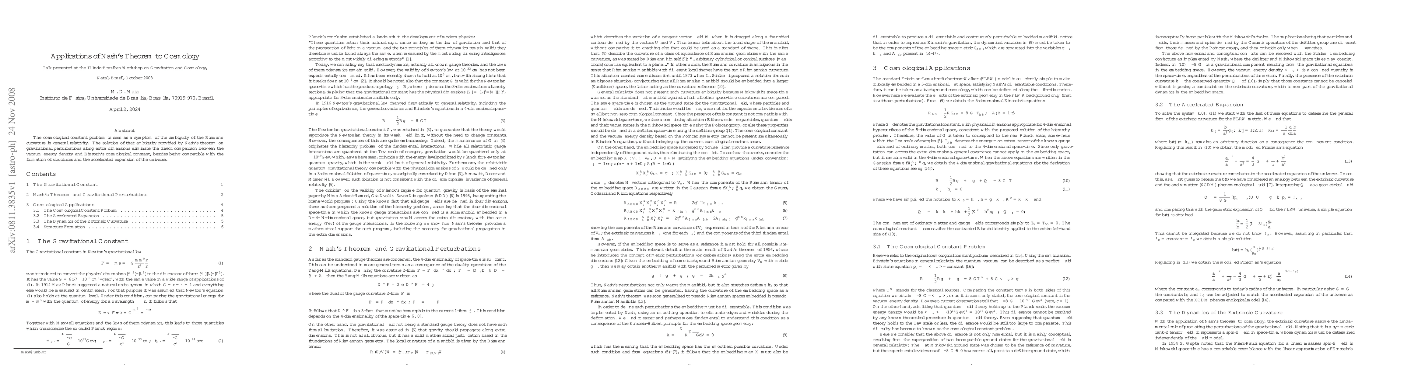 The paper introduces a novel application of Nash's theorem to cosmology, providing a mathematical framework for understanding gravitational perturbations in extra dimensions and resolving the cosmological constant problem.