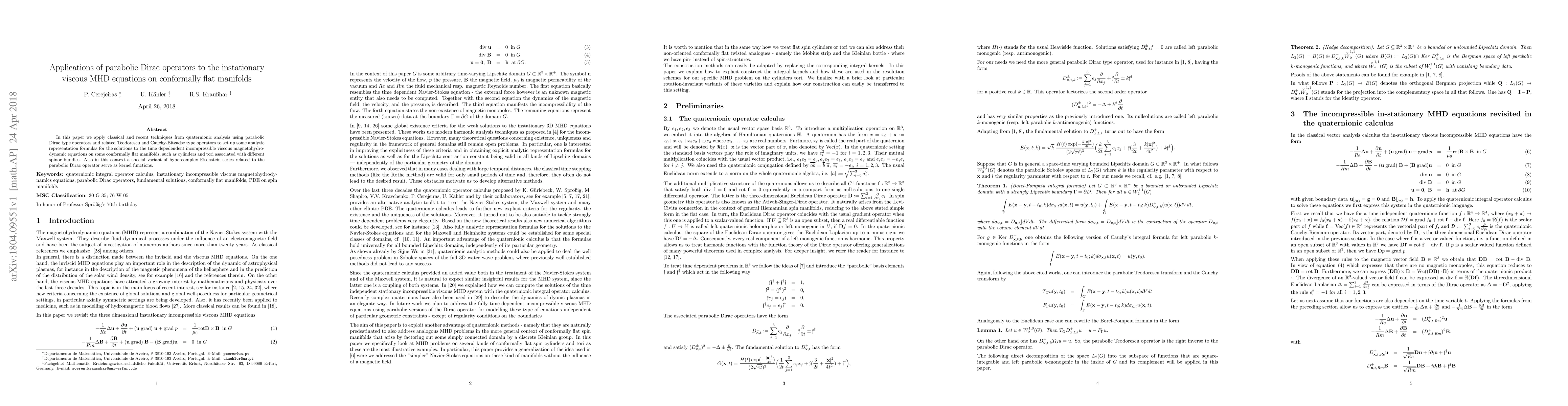 This paper utilizes parabolic Dirac operators and related mathematical tools to derive analytic representation formulas for solutions to the instationary viscous magnetohydrodynamic equations on conformally flat manifolds, employing hypercomplex Eisenstein series as kernel functions. The study focuses on manifolds like cylinders and tori associated with different spinor bundles.