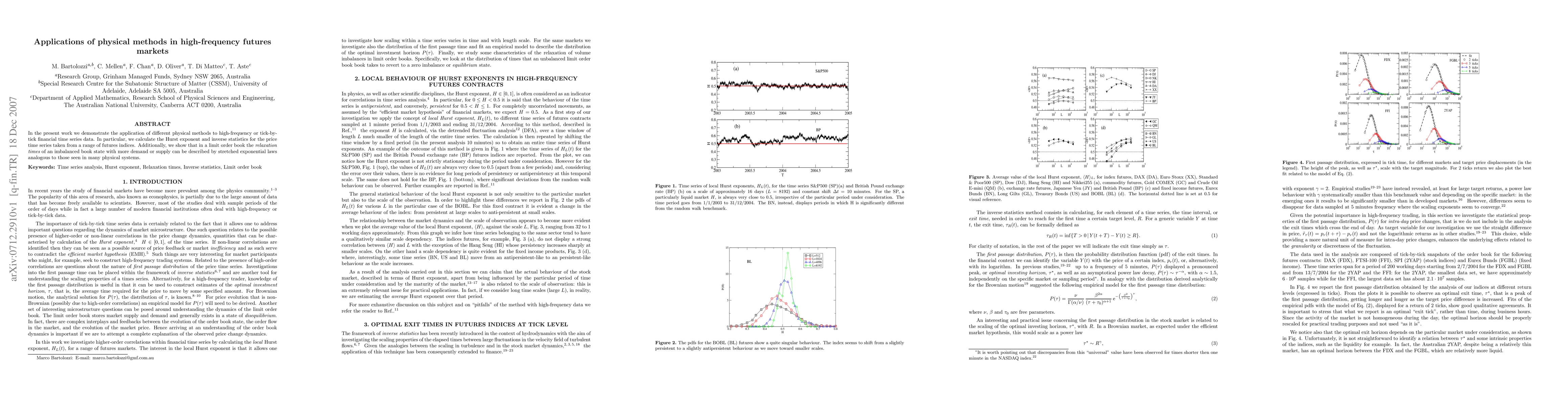 In the present work we demonstrate the application of different physical methods to high-frequency or tick-by-tick financial time series data. In particular, we calculate the Hurst exponent and inverse statistics for the price time series taken from a range of futures indices. Additionally, we show that in a limit order book the relaxation times of an imbalanced book state with more demand or supply can be described by stretched exponential laws analogous to those seen in many physical systems.