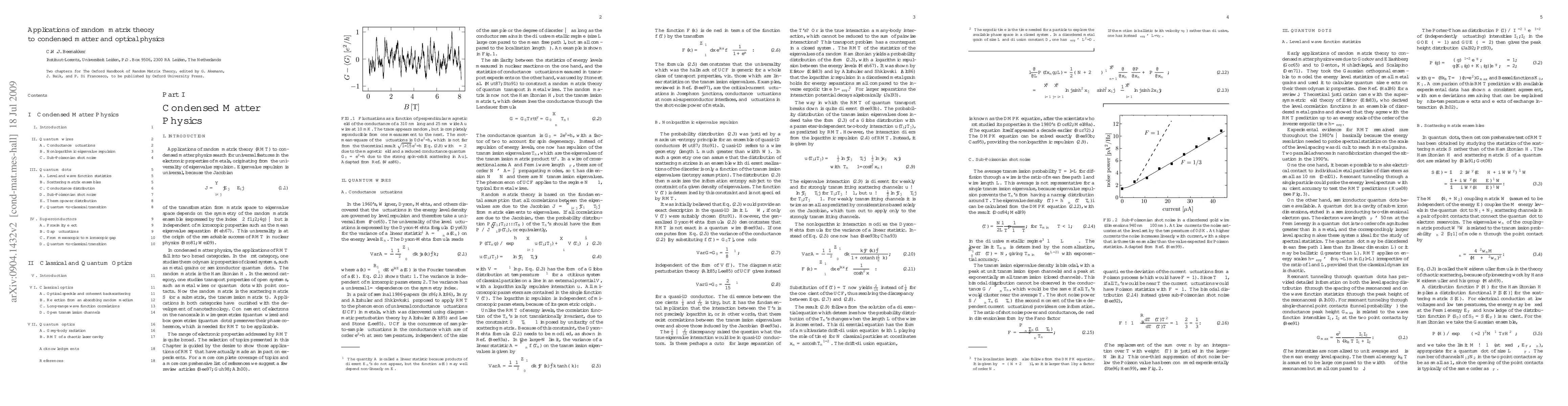 This is a cursory overview of applications of concepts from random matrix theory (RMT) to quantum electronics and classical & quantum optics. The emphasis is on phenomena, predicted or explained by RMT, that have actually been observed in experiments on quantum wires, quantum dots, disordered wave guides, and chaotic resonators. Topics considered include universal conductance fluctuations, weak localization and coherent backscattering, sub-Poissonian shot noise and open transmission channels, non-Gaussian conductance and thermopower distributions, mesoscopic superconductivity, grey-body radiation, and chaotic laser cavities.